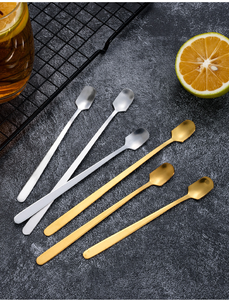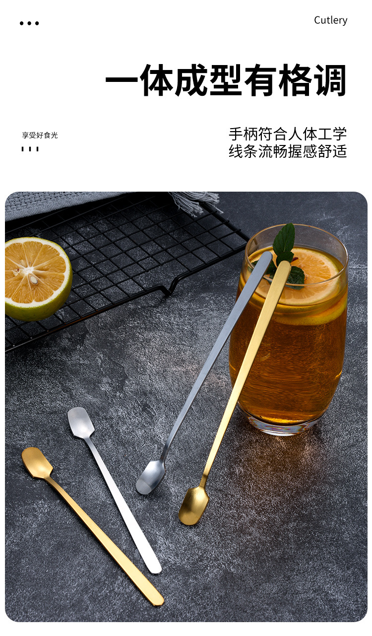 스테인레스 스틸 스퀘어 헤드 스푼 혼합 숟가락 인터넷 유명 인사 긴 손잡이 숟가락 조미료 작은 숟가락 커피 숟가락 새 둥지 허니 스푼 선물 숟가락