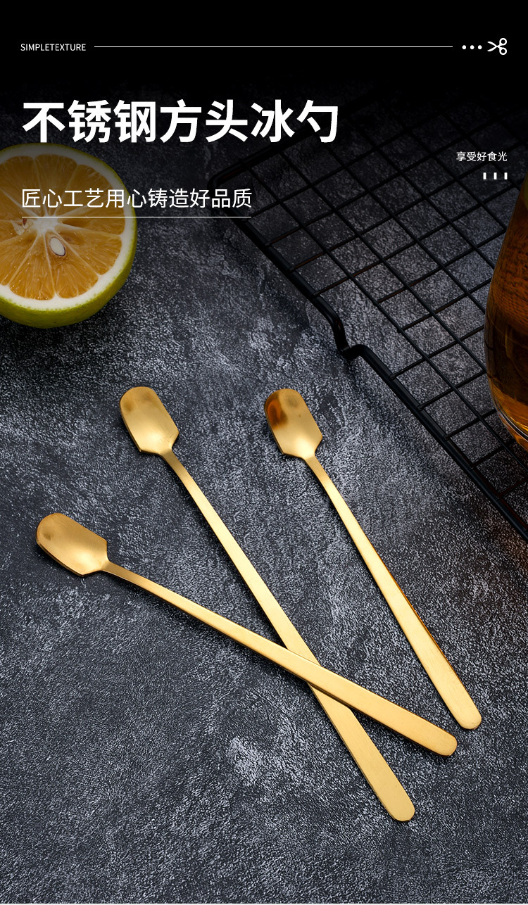 • 13CM 스퀘어 헤드 스푼 골드 (품질)