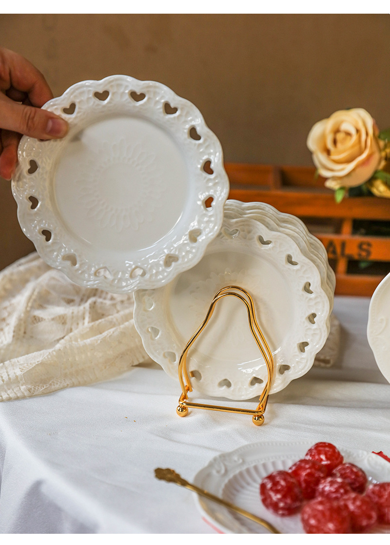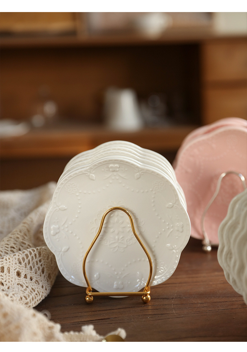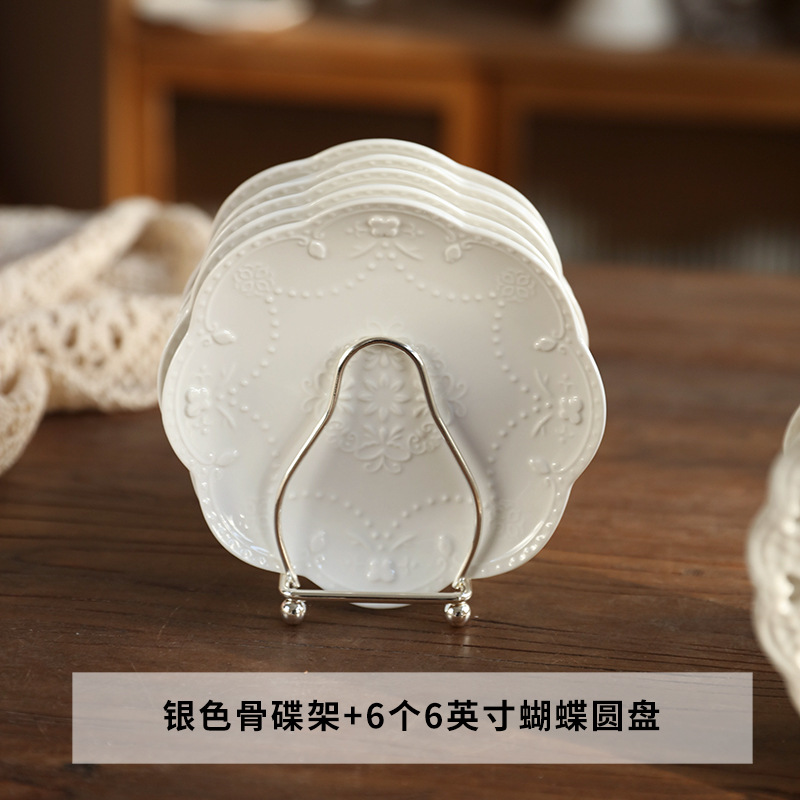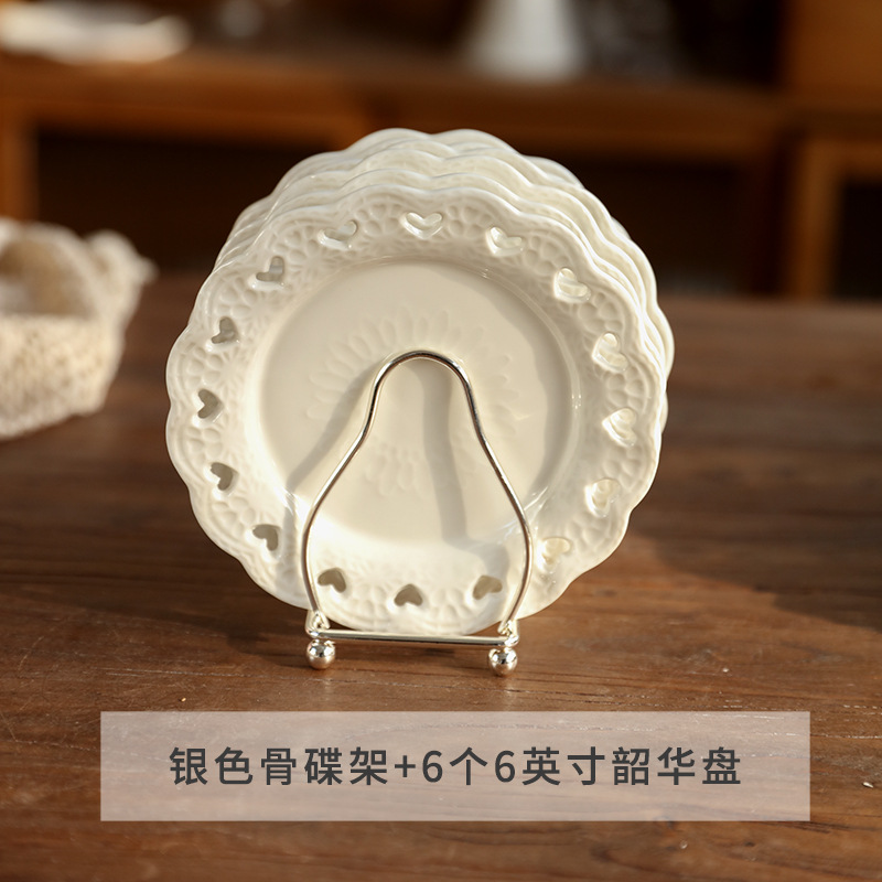 • 실버 뼈 접시 랙 + 6 인치 Shaohua 플레이트 6 개