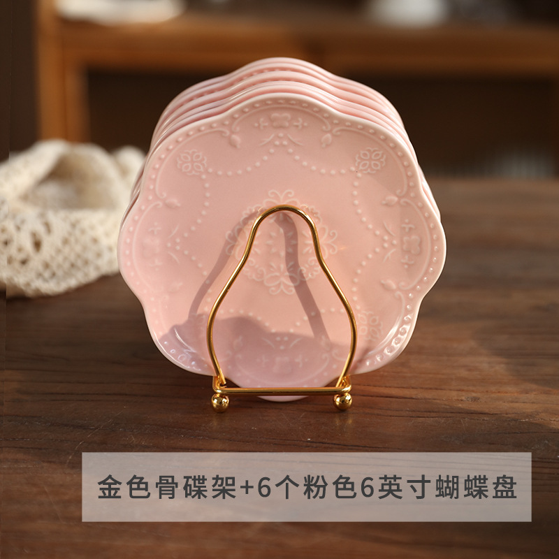 • 황금 뼈 접시 랙 + 6 핑크 6 인치 나비 접시