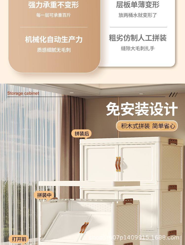사용자 정의 저장 상자 두 배 문 저장 캐비닛 접이식 플라스틱 옷장 크림 스타일 옷 피팅 상자 침실 보관 캐비닛스토어 가기