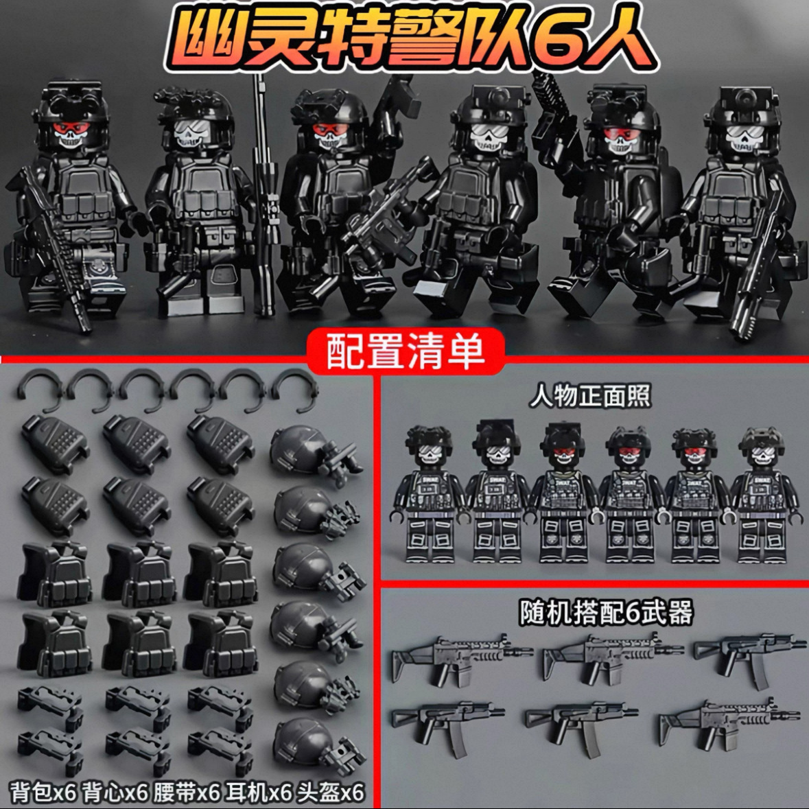 국경 간 군사 호환 레고 블록 유령 위장 특수부대 피규어 군대 특수경찰팀 무기 장비스토어 가기