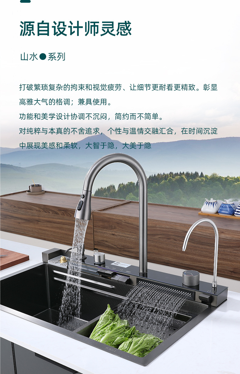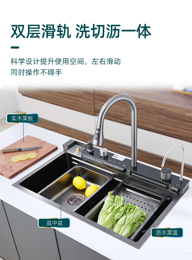 고래 비가림 폭포 수전 대형 싱크대 주방 언더싱크 채소 세척대 배수 싱크대 럭셔리 스타일