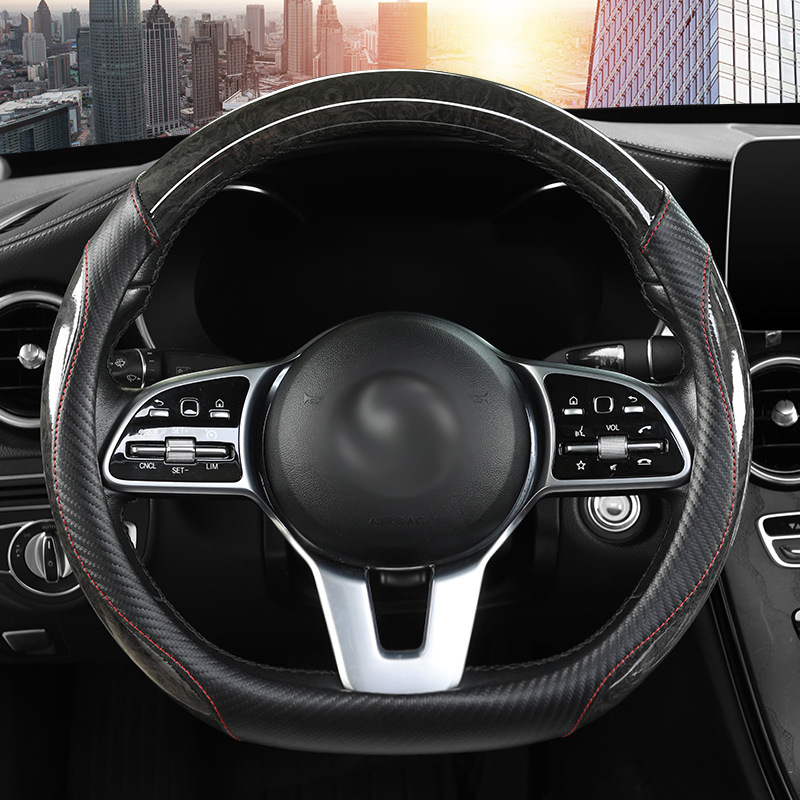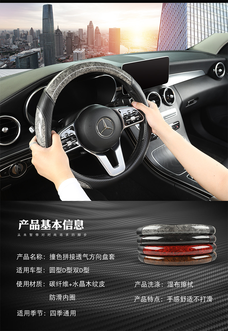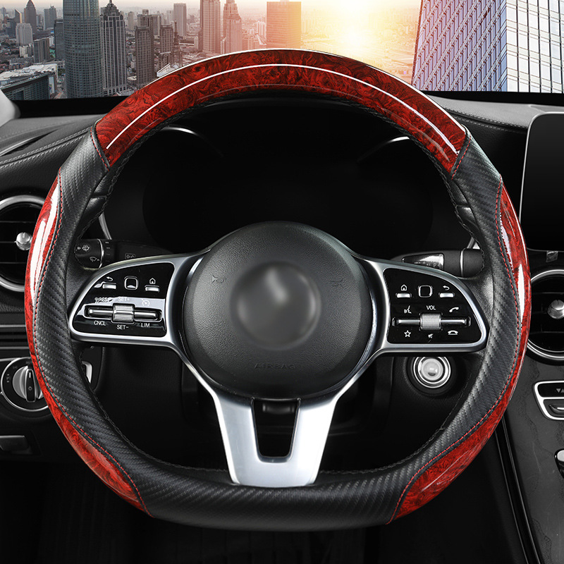 원피스 배달 자동차 스티어링 휠 커버 사계절 유니버설 새로운 복숭아 우드 그레인 안티 파울링 내마모성 가죽 커버 D 타입 대형 스몰 사이즈스토어 가기