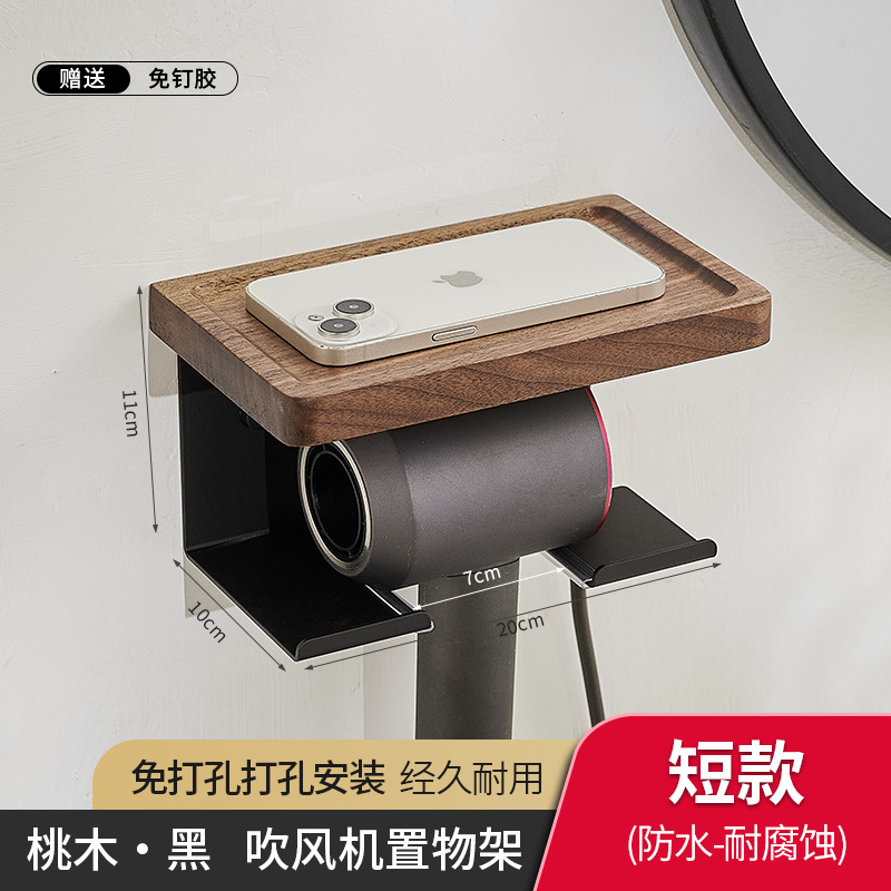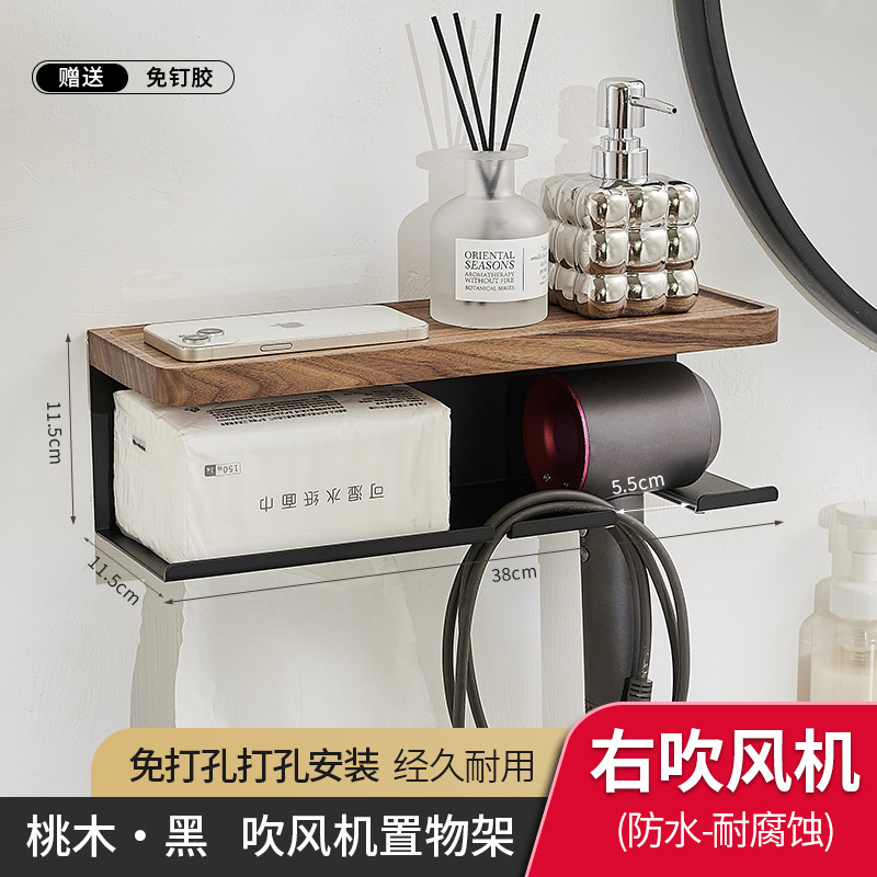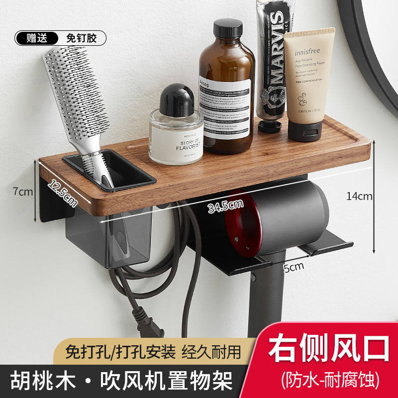 가벼운 고급 헤어 드라이어 보관 랙 구멍이없는 호두 헤어 드라이어 보관 랙 욕실 세척 랙