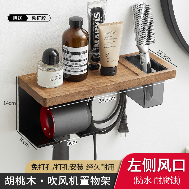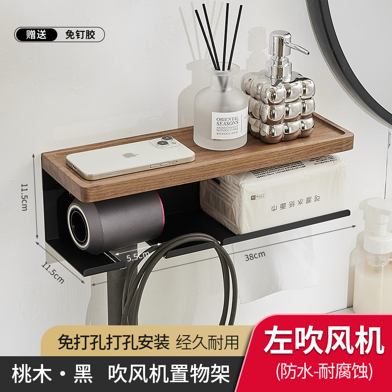 • 왼쪽 헤어 드라이어 랙 종이 랙-호두 블랙