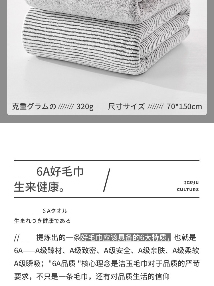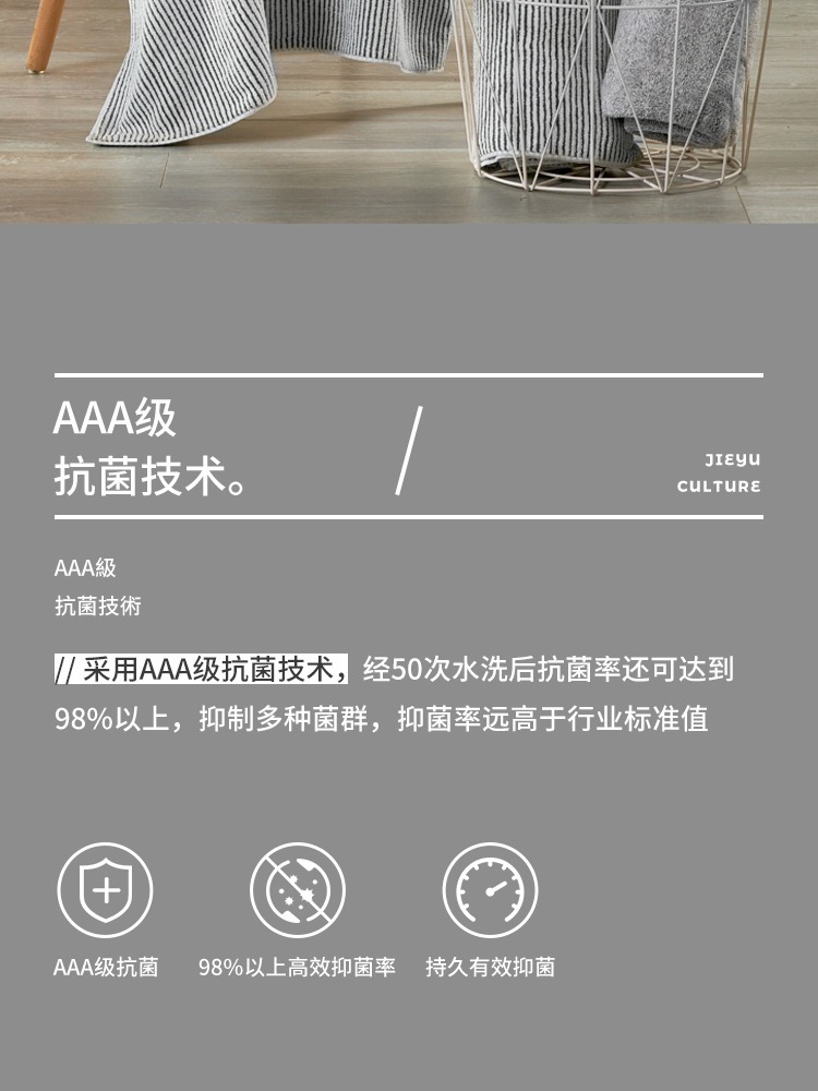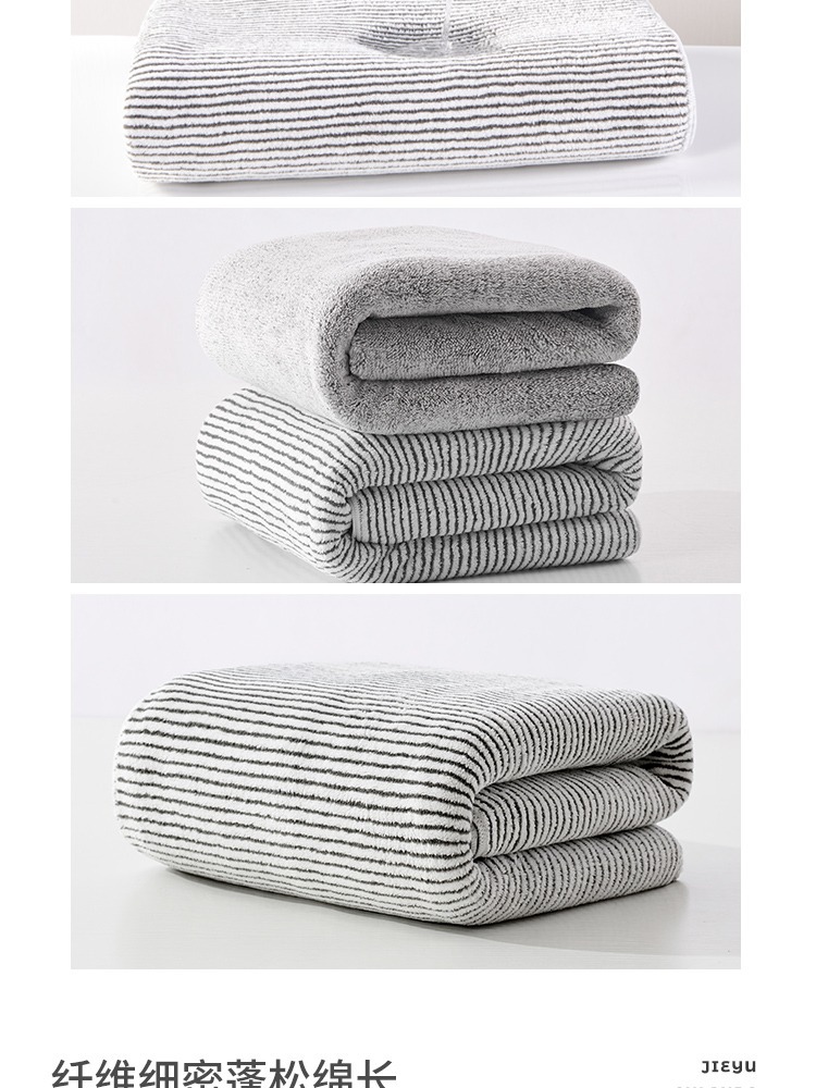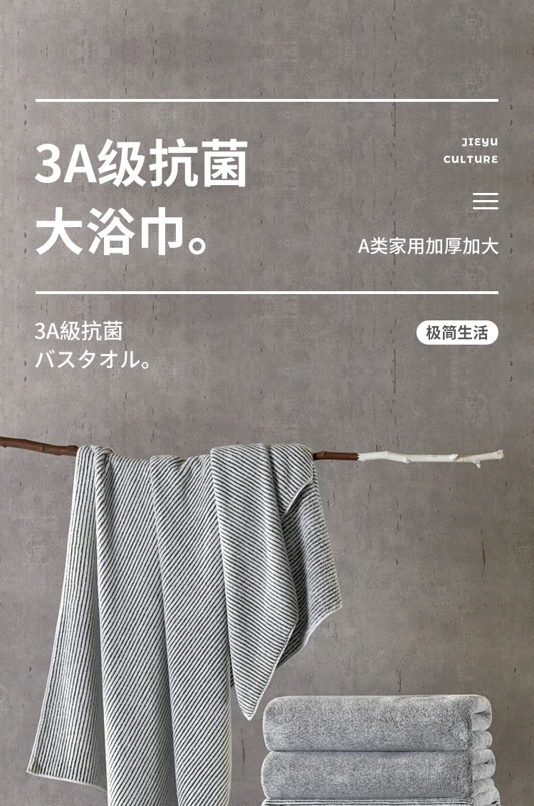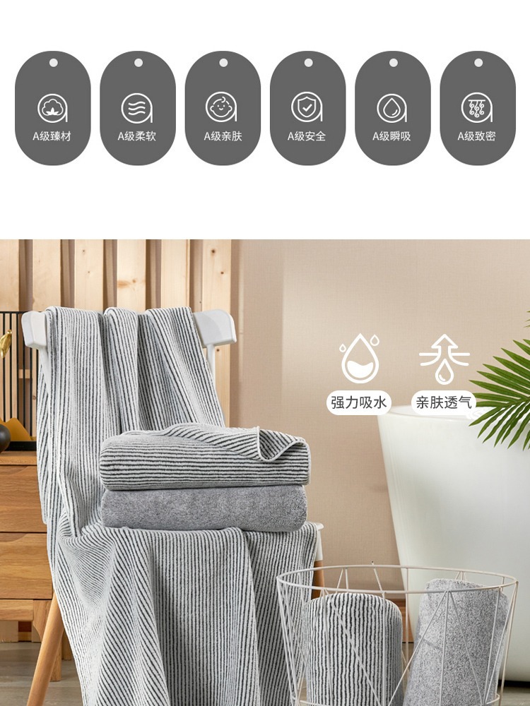• 줄무늬 회색 목욕 타월 "대나무 숯 항균" (70x140cm)