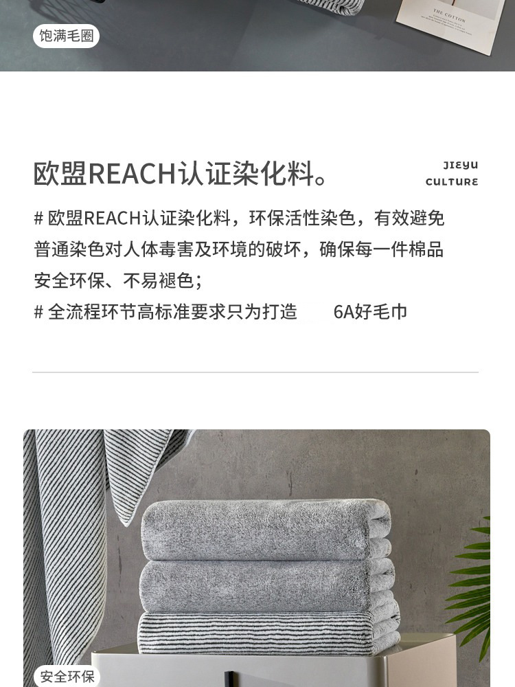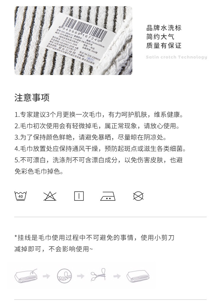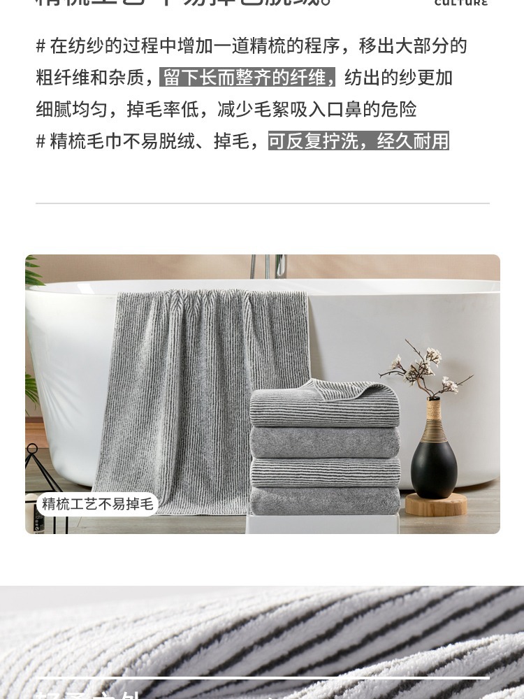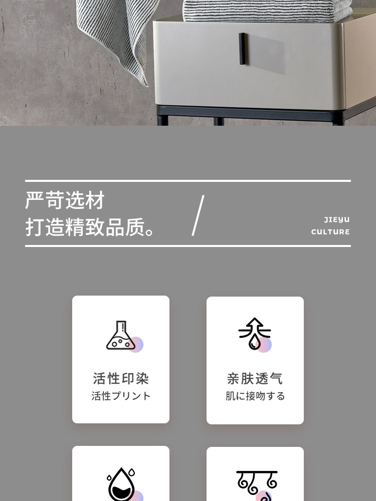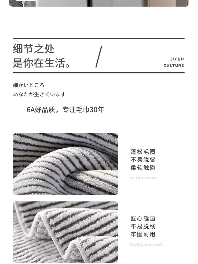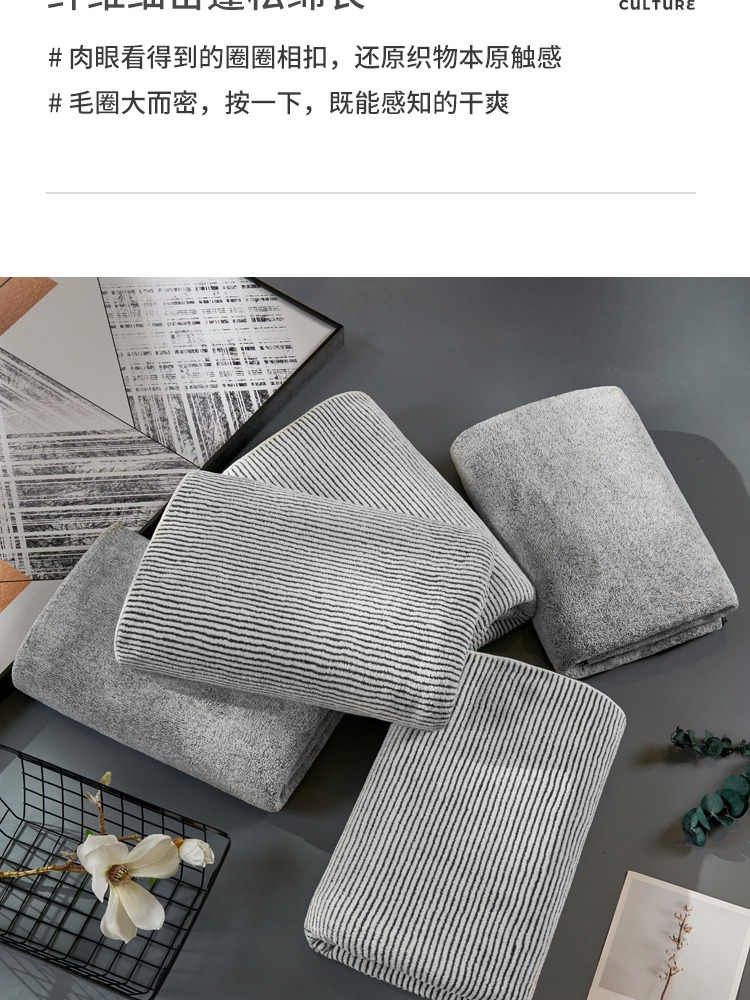• 줄무늬 회색 목욕 타월 "대나무 숯 항균" (70x140cm)