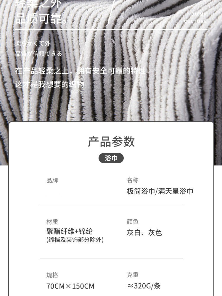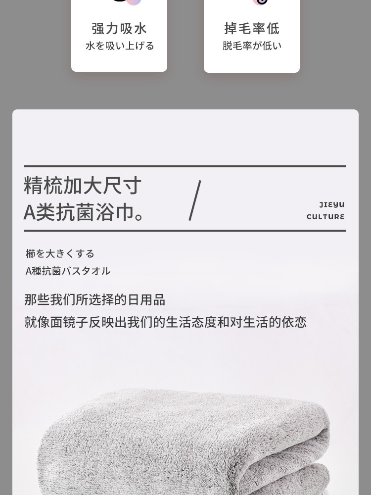 • 별 회색 목욕 타월 "대나무 숯 항균" (70x140cm)