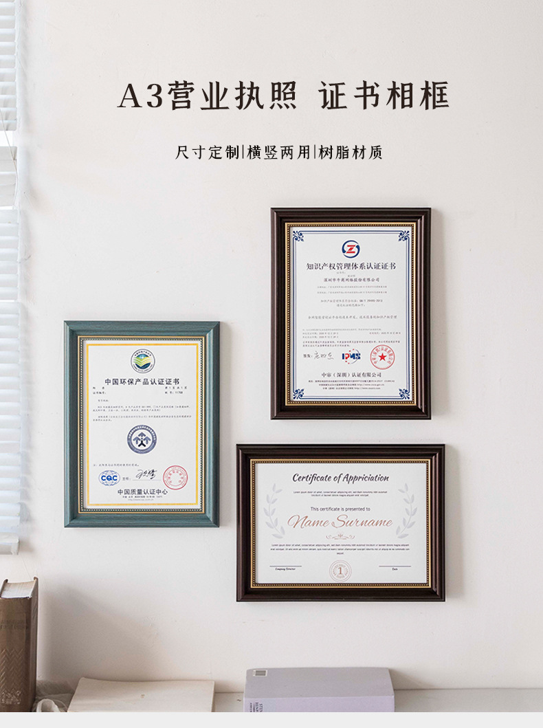 인증서 프레임 A4 사진 프레임 장식 특허 승인 편지 명예 인증서 디스플레이 프레임 비즈니스 라이센스 프레임 사용자 정의 도매스토어 가기