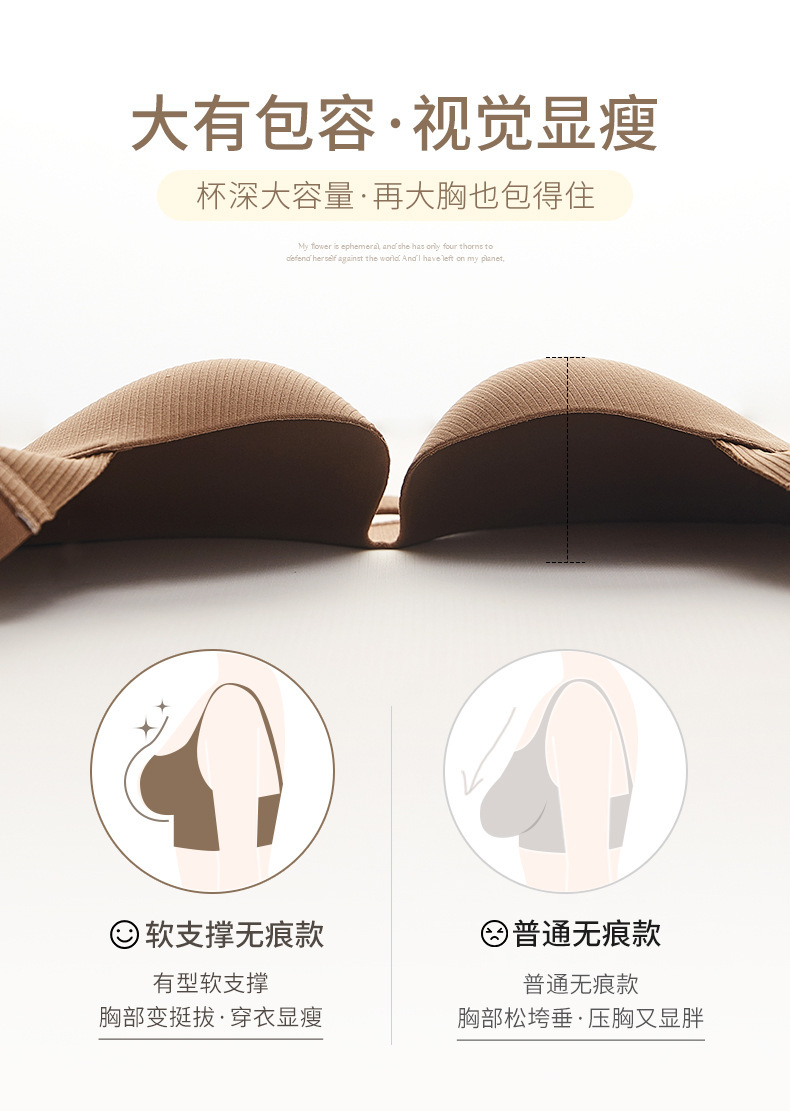 새로운 Traceless 속옷 여성의 작은 가슴 모이기 큰 가슴 큰 가슴 쇼블 작은 브래지어 고정 컵을위한 얇은 비 강철 반지
