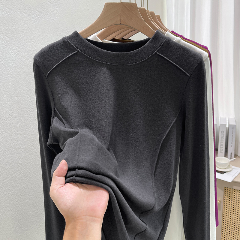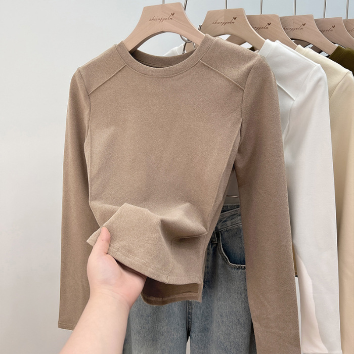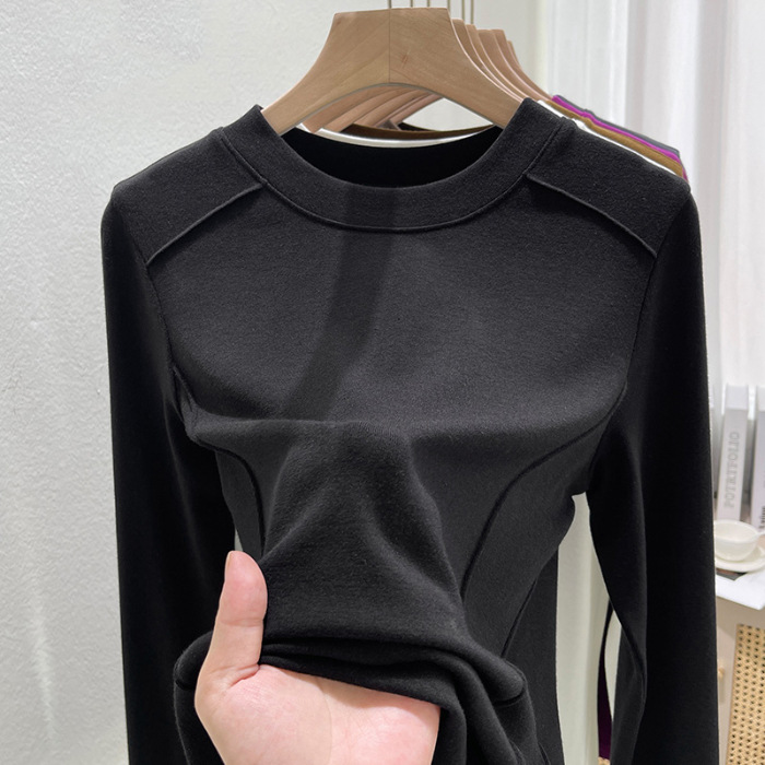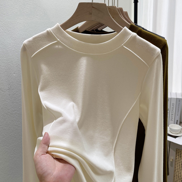 MO07 # 틈새 세련된 Fishbone 긴팔 티셔츠 여성의 가을과 겨울 새로운 내부 탑 슬림 핏 벨벳 바닥 셔츠