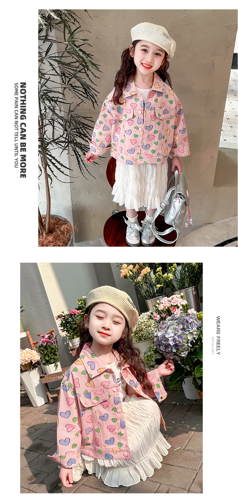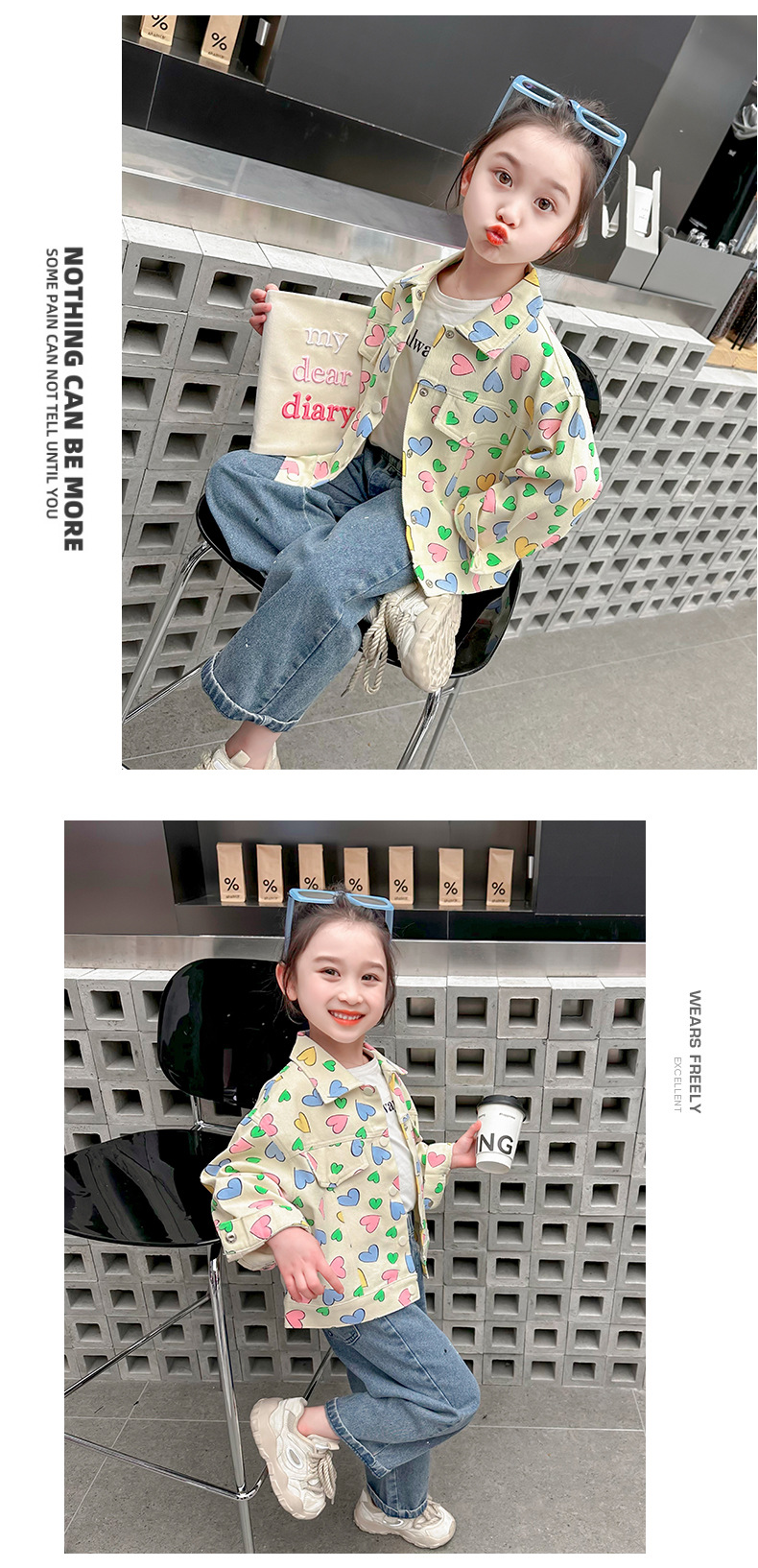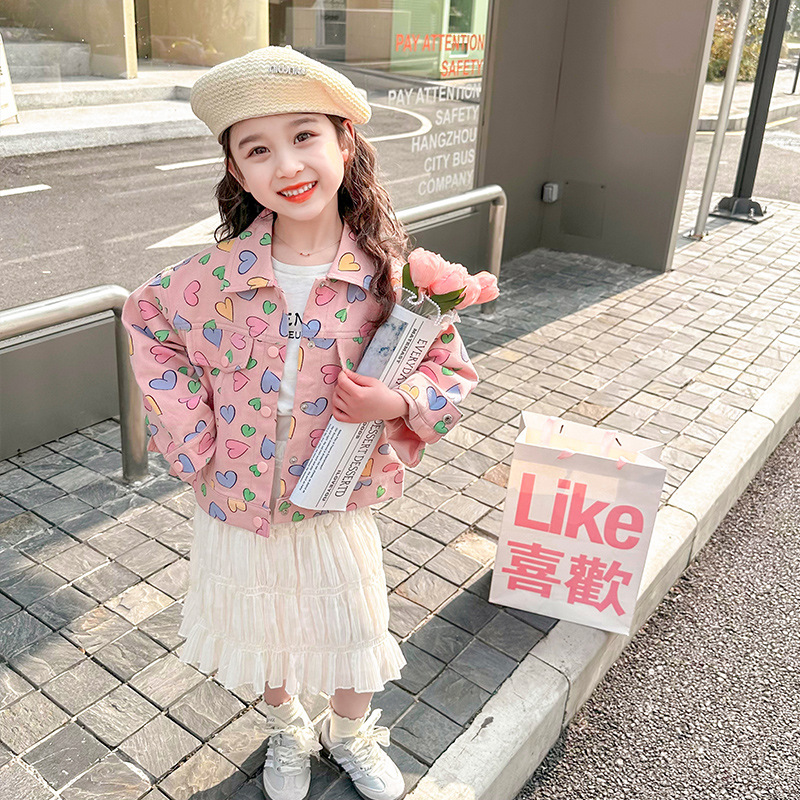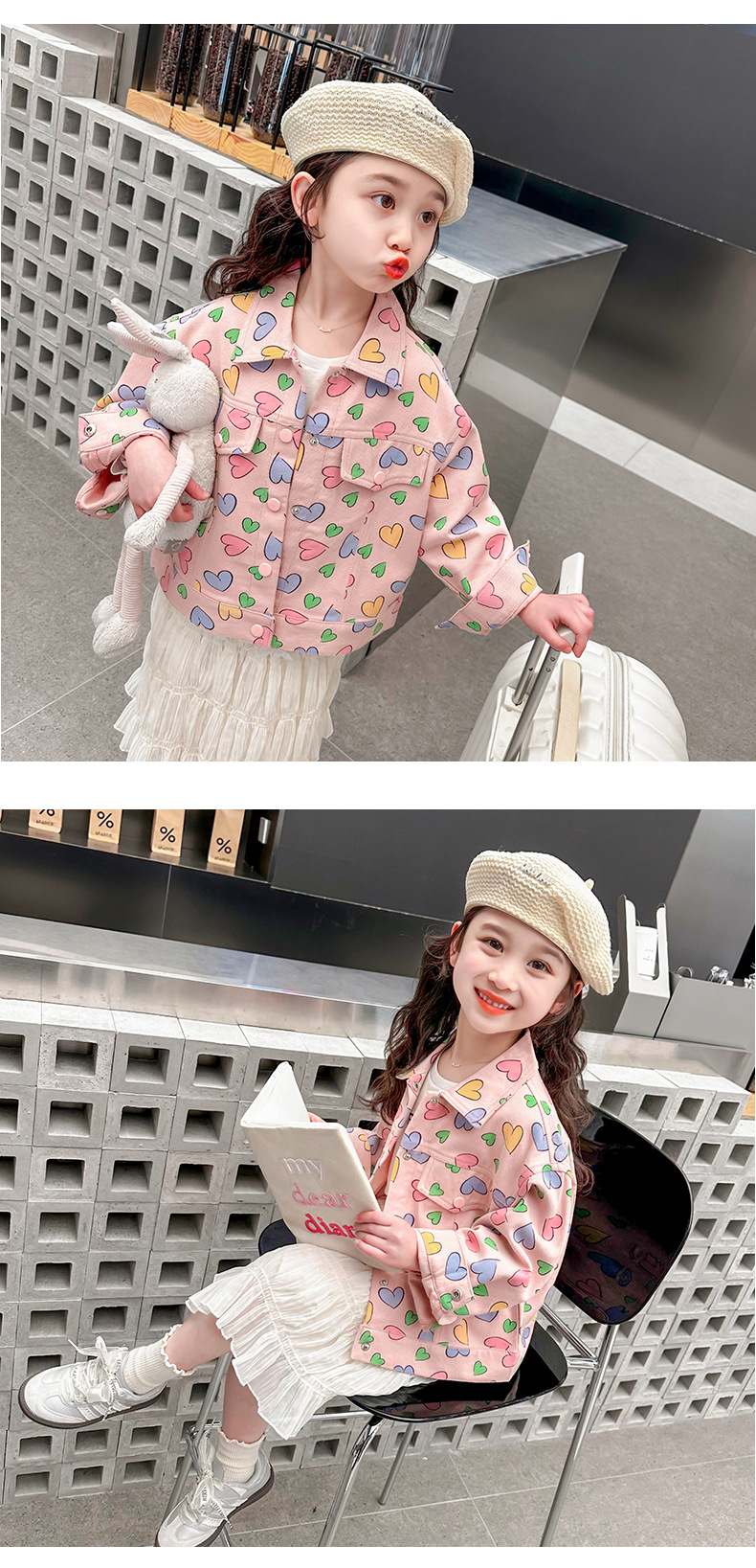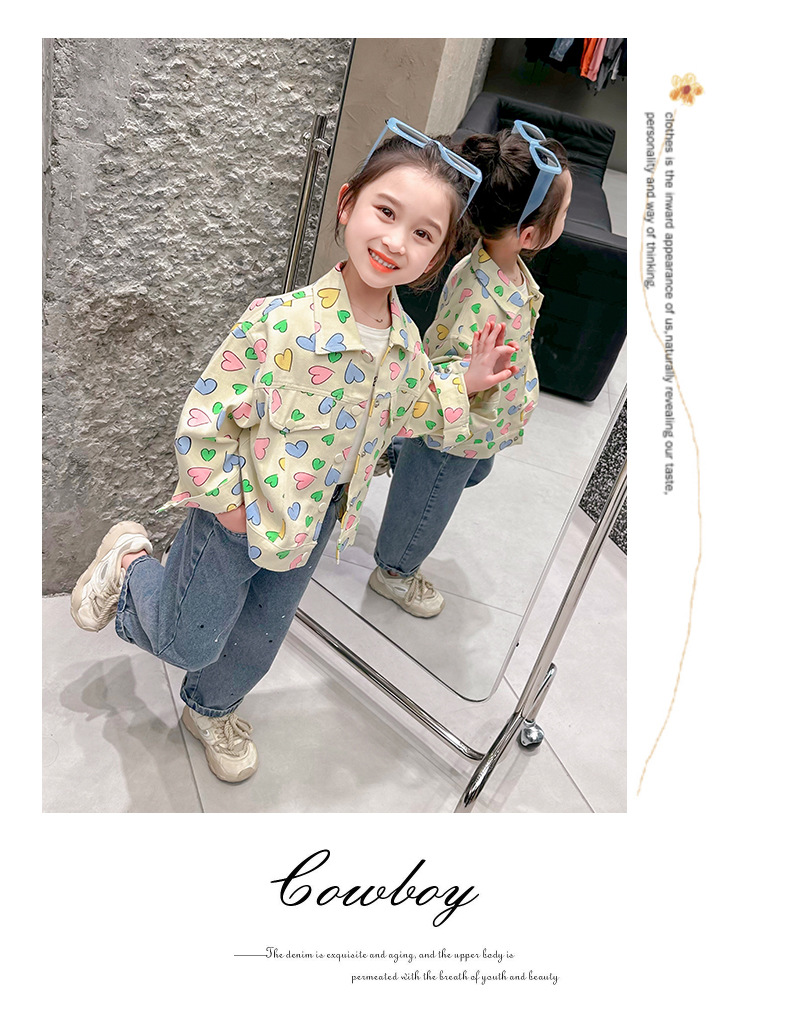 소녀 데님 코트 봄과 가을 2024 새로운 스타일 어린이 서양식 다채로운 사랑스러운 아기 소녀 봄 서양식 탑스토어 가기