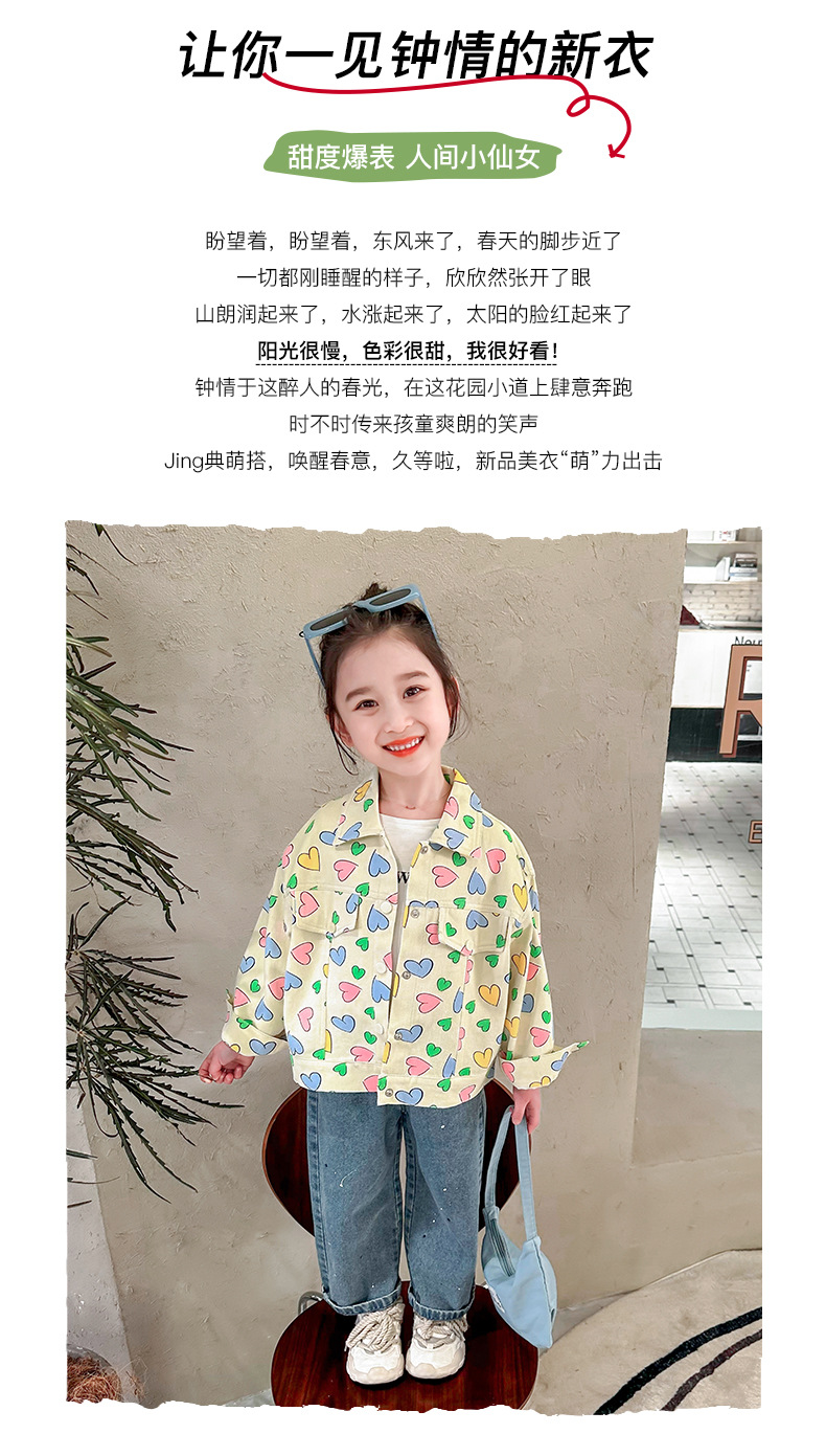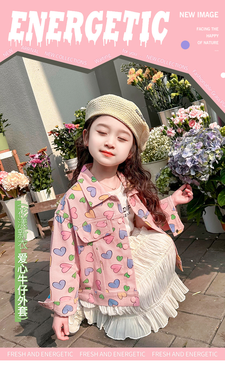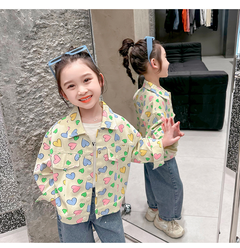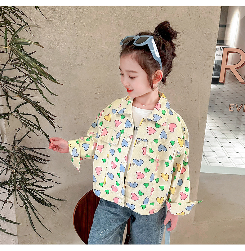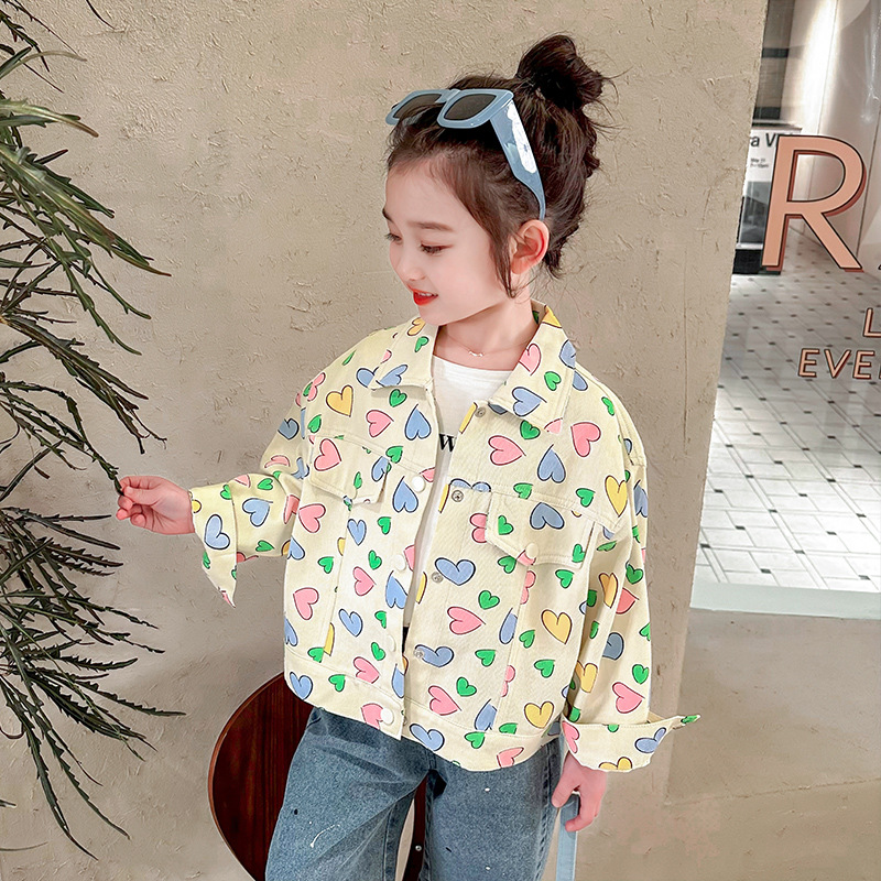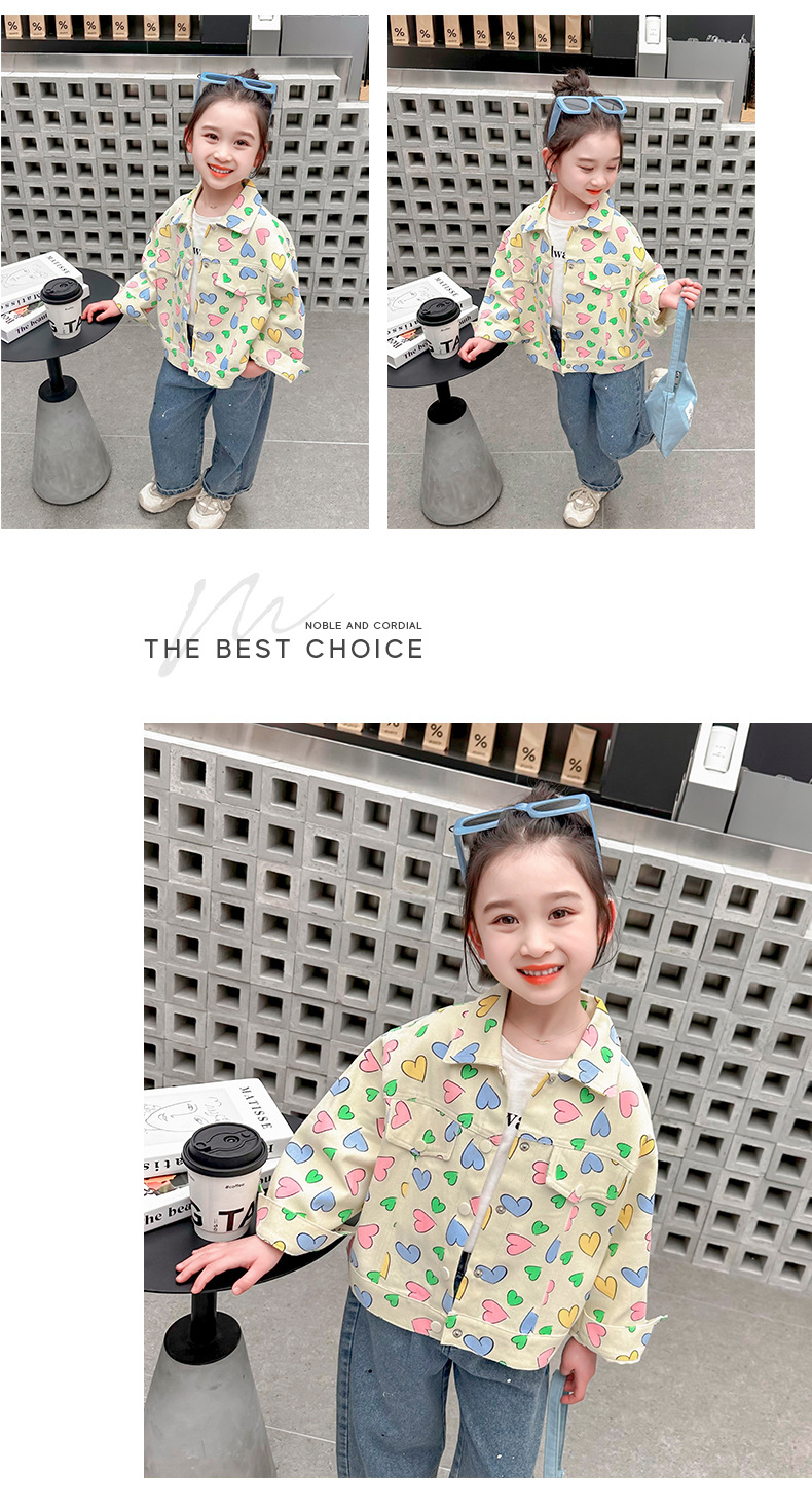 소녀 데님 코트 봄과 가을 2024 새로운 스타일 어린이 서양식 다채로운 사랑스러운 아기 소녀 봄 서양식 탑스토어 가기
