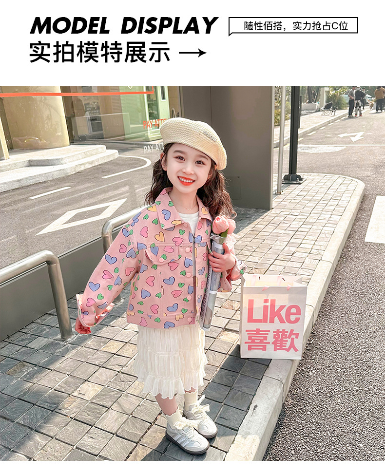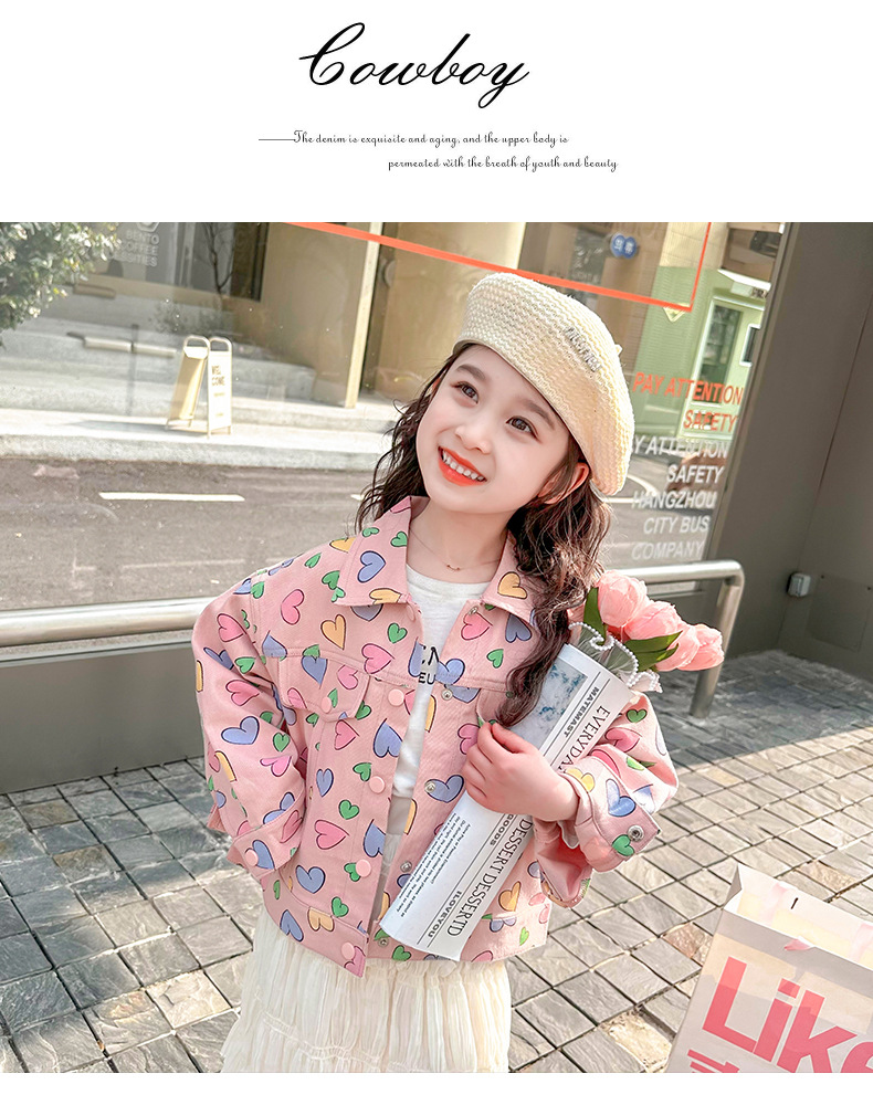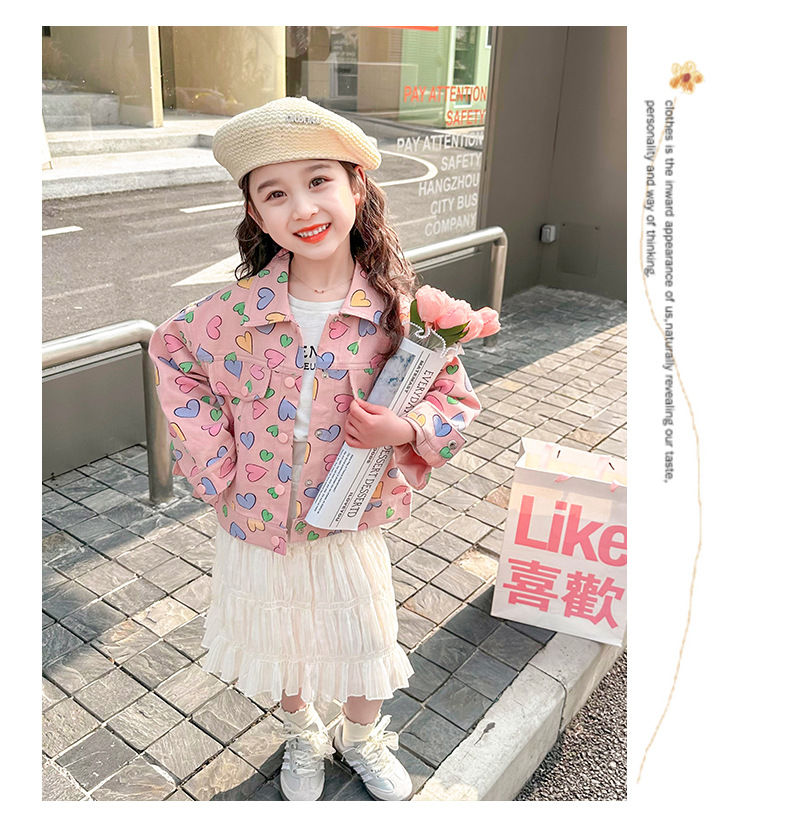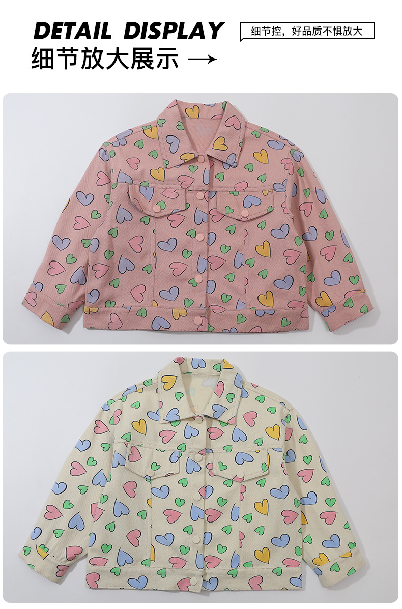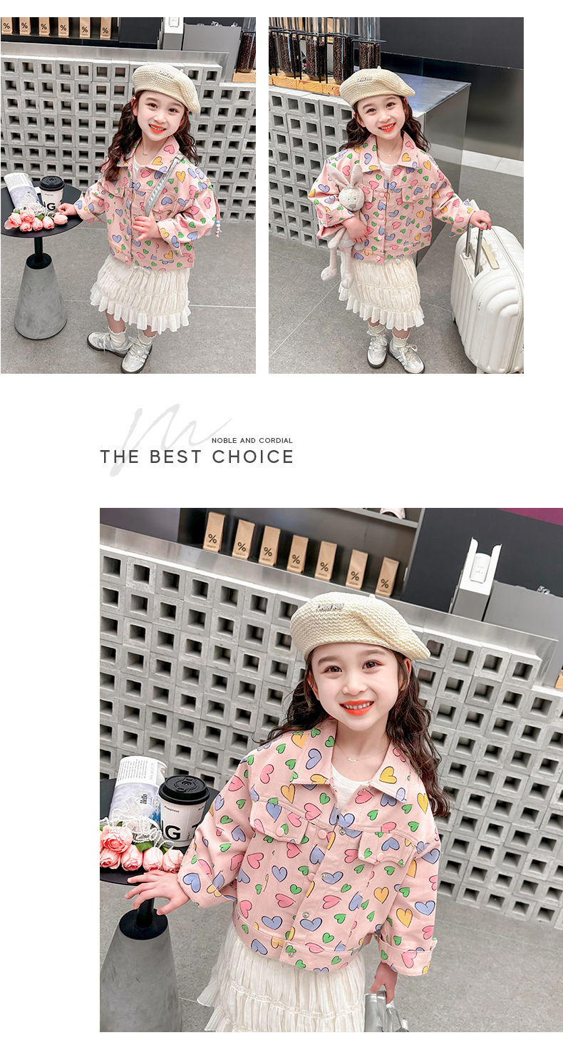 소녀 데님 코트 봄과 가을 2024 새로운 스타일 어린이 서양식 다채로운 사랑스러운 아기 소녀 봄 서양식 탑스토어 가기