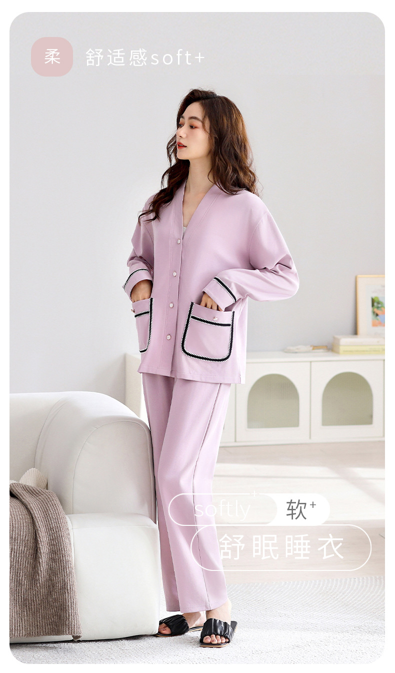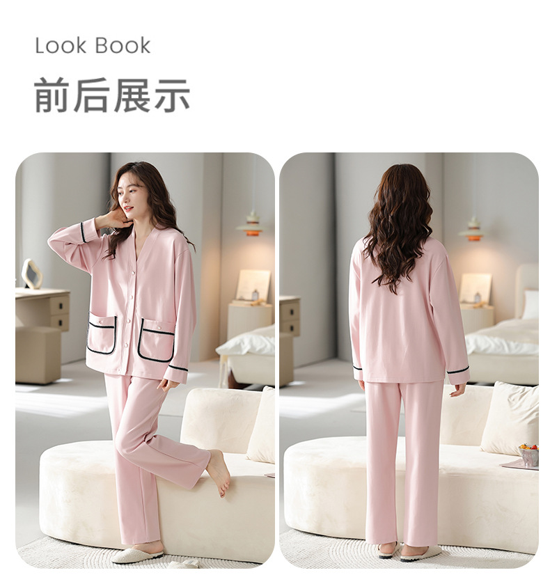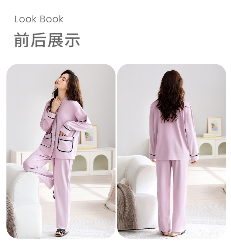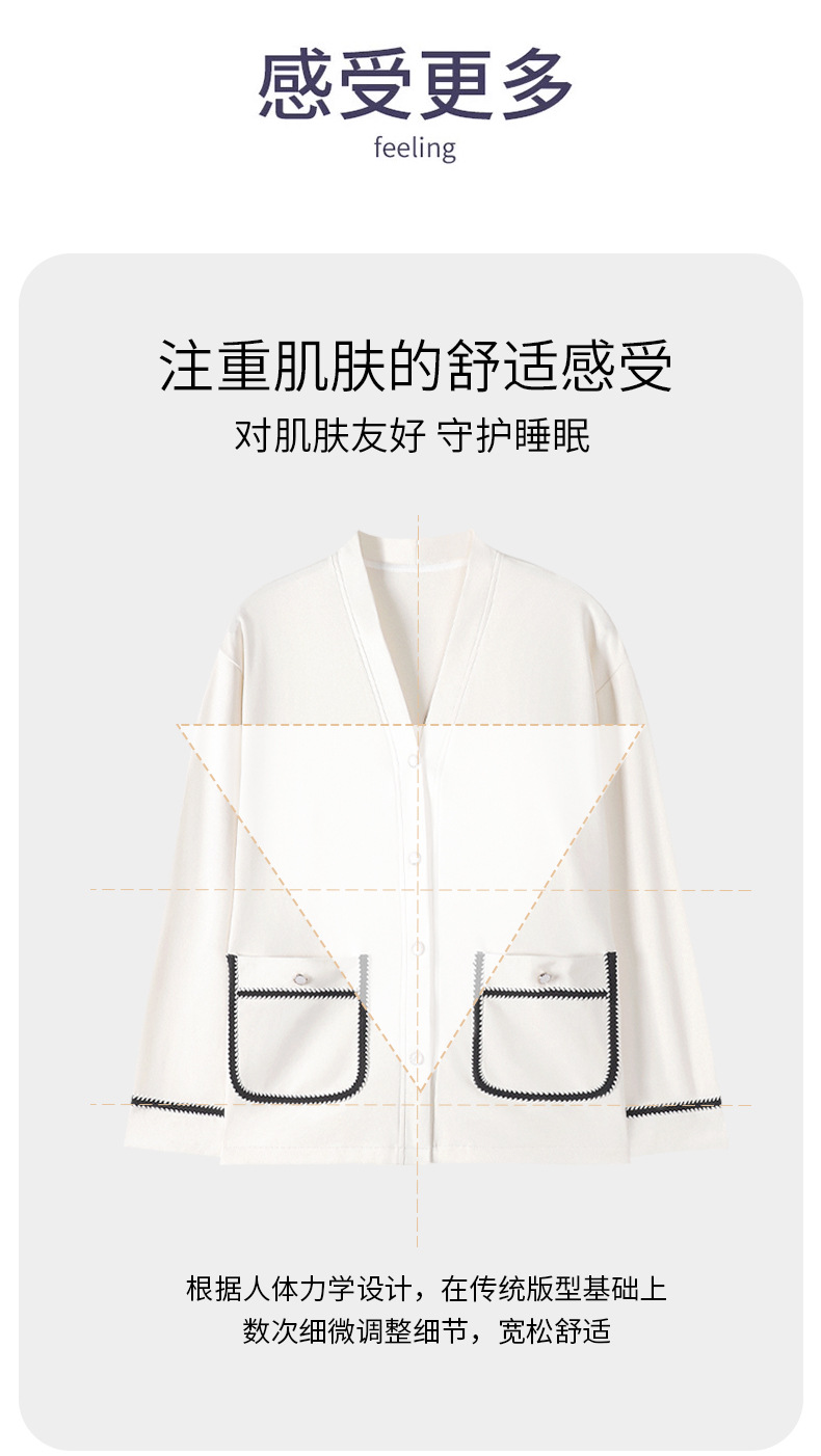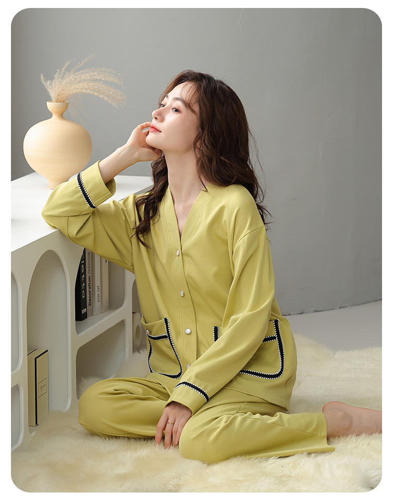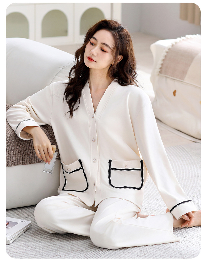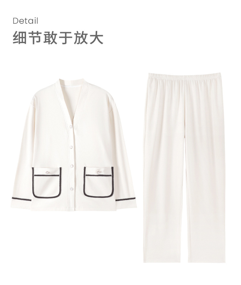 잠옷 여성의 봄과 가을면 얇은 긴 소매 봄과 여름 V 넥 화이트 사교계 스타일의 고급 가정복 세트스토어 가기