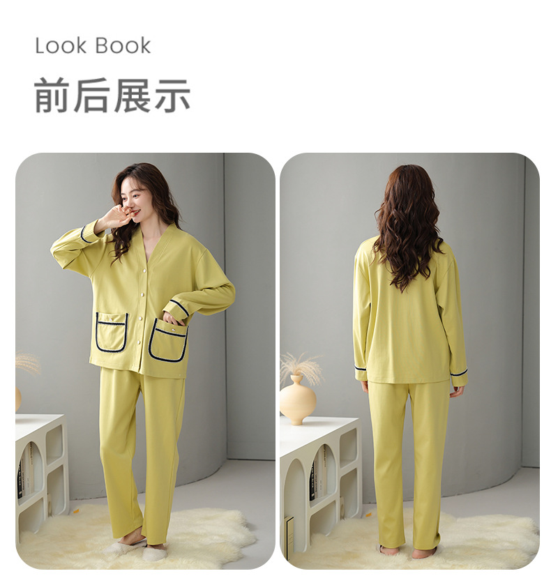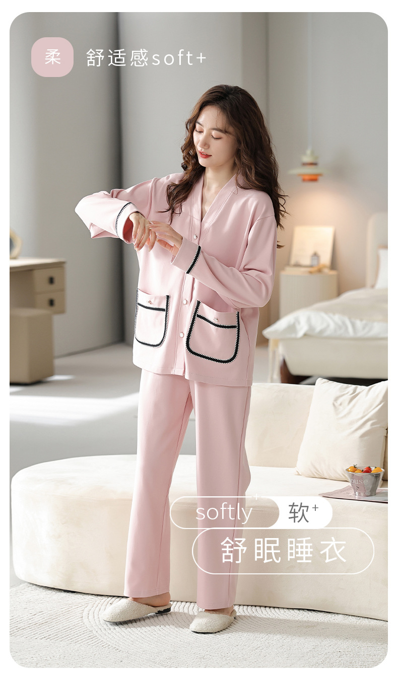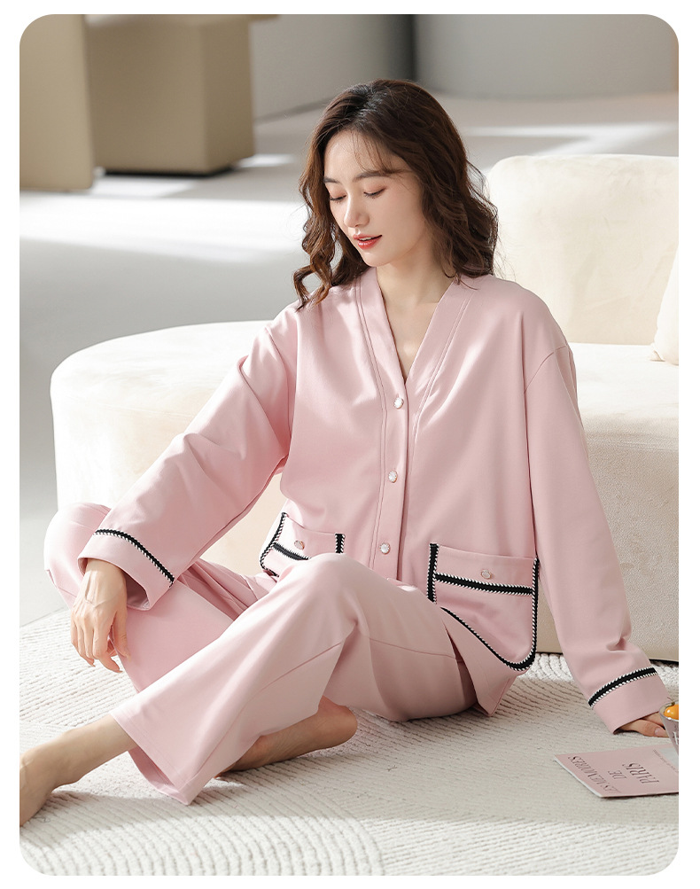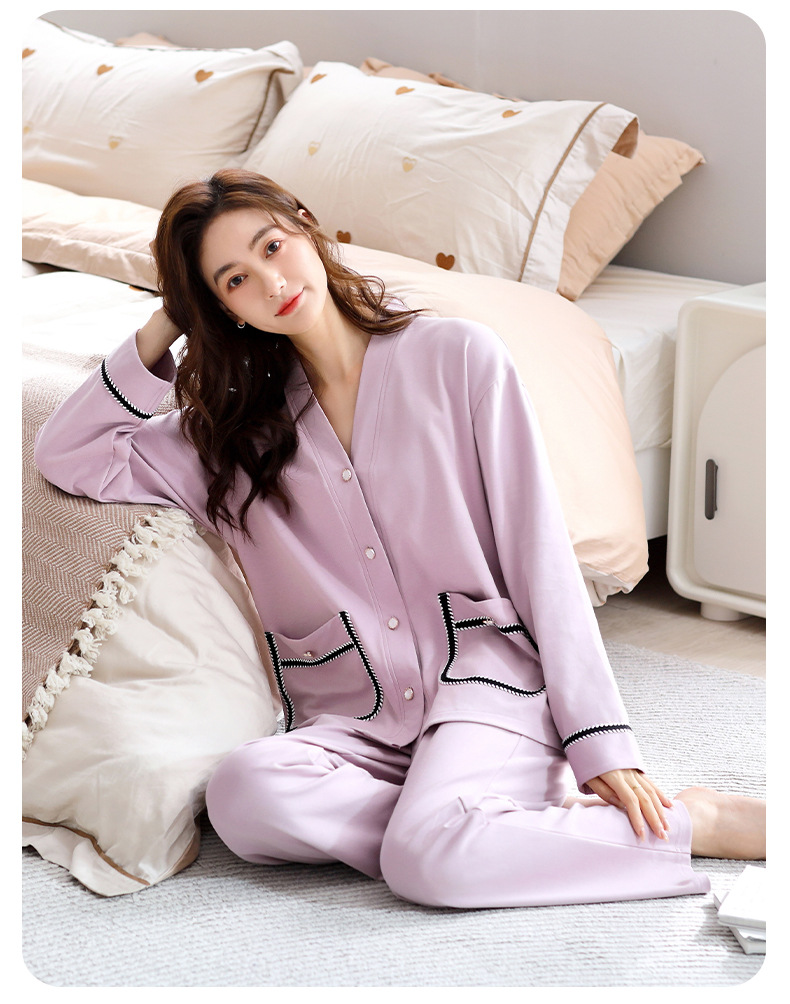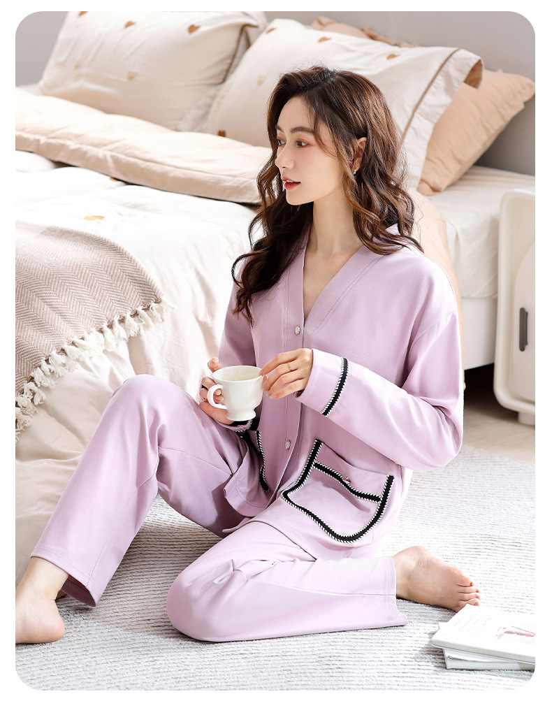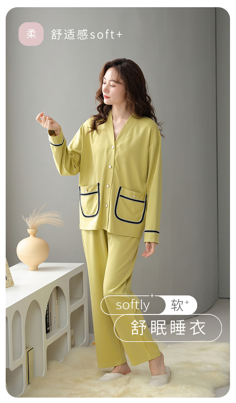 잠옷 여성의 봄과 가을면 얇은 긴 소매 봄과 여름 V 넥 화이트 사교계 스타일의 고급 가정복 세트스토어 가기
