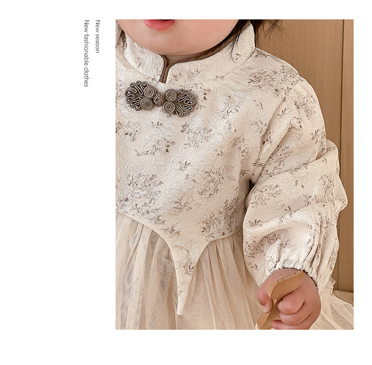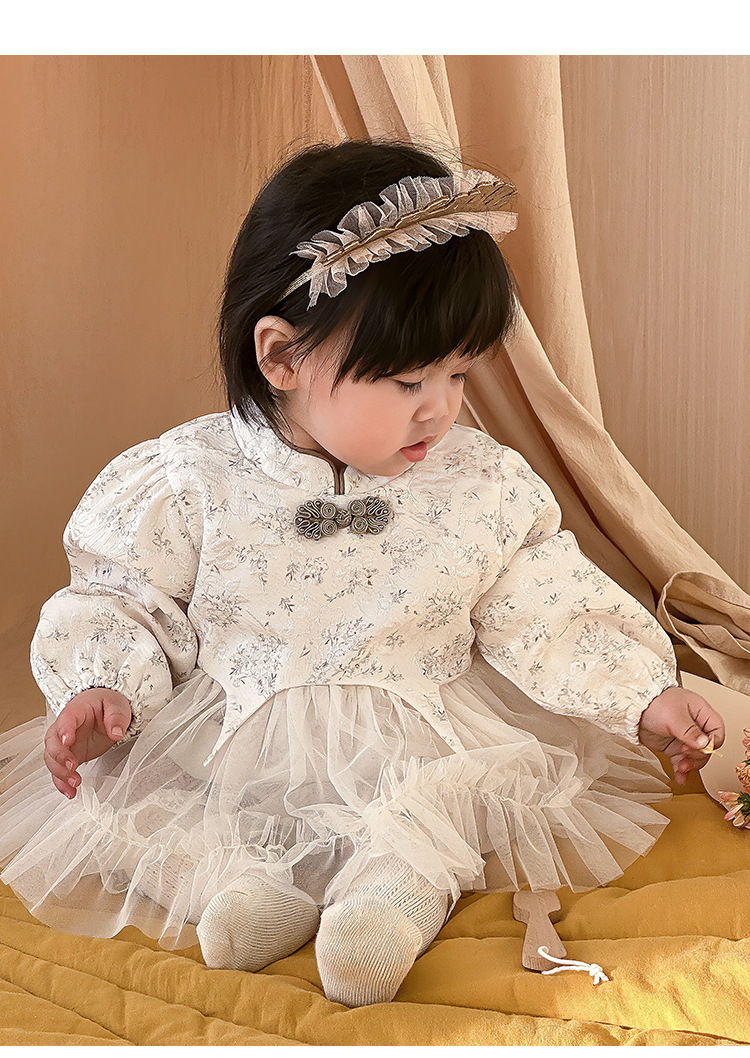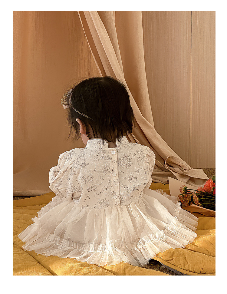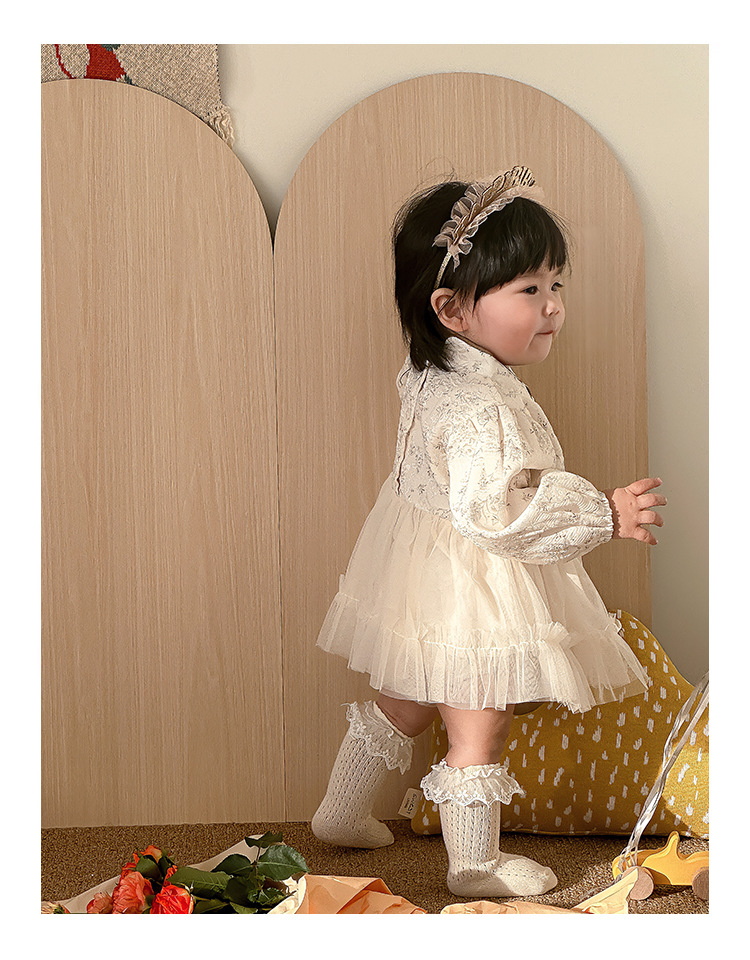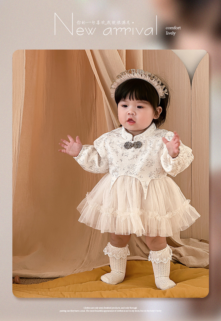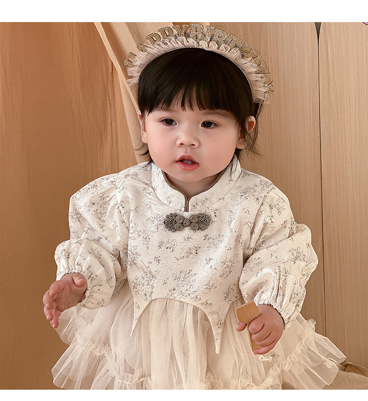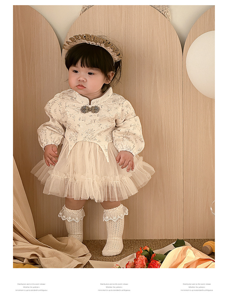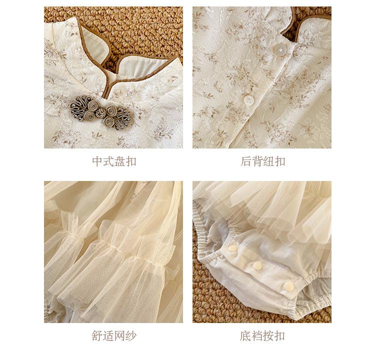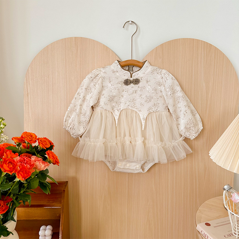 아기 옷 봄과 가을 신생아 아기 소녀 점프 수트 한 달 된 백 일 공주 롬퍼 새로운 중국 스타일 거즈 스커트 칼집