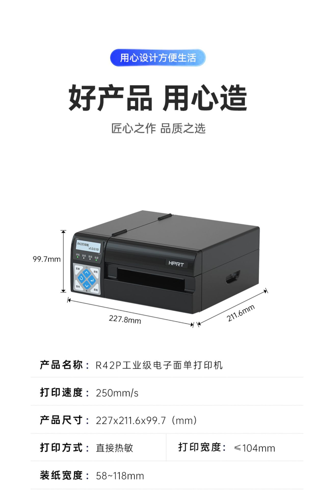 Hanyin R32P/R42P 고속 전자 표면 시트 접착 스티커 바코드 단일 열 라벨 프린터