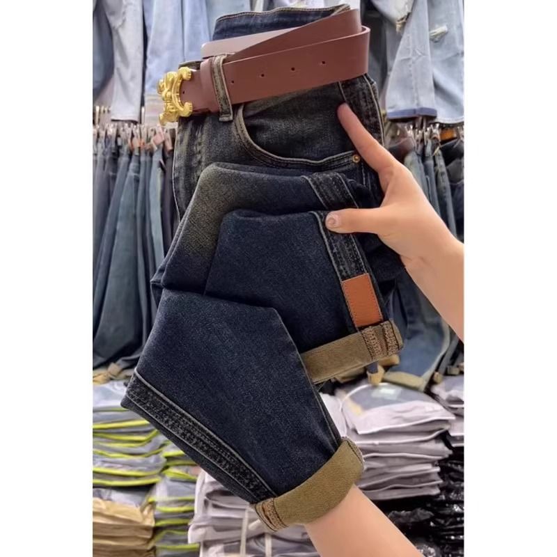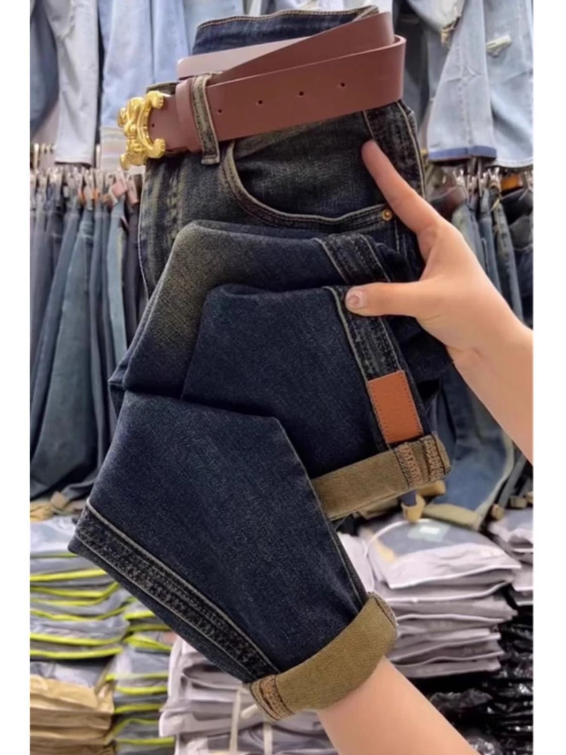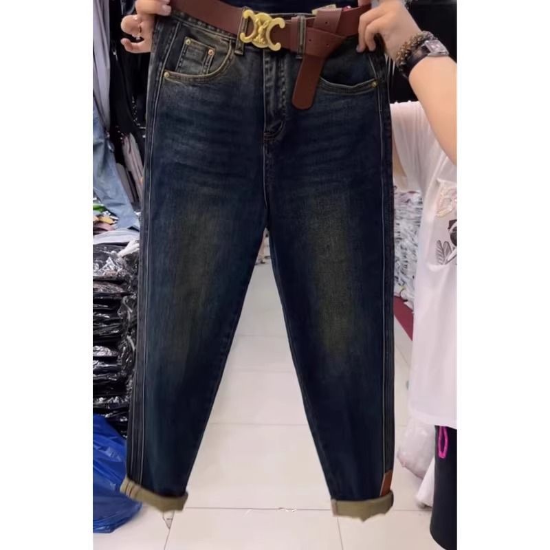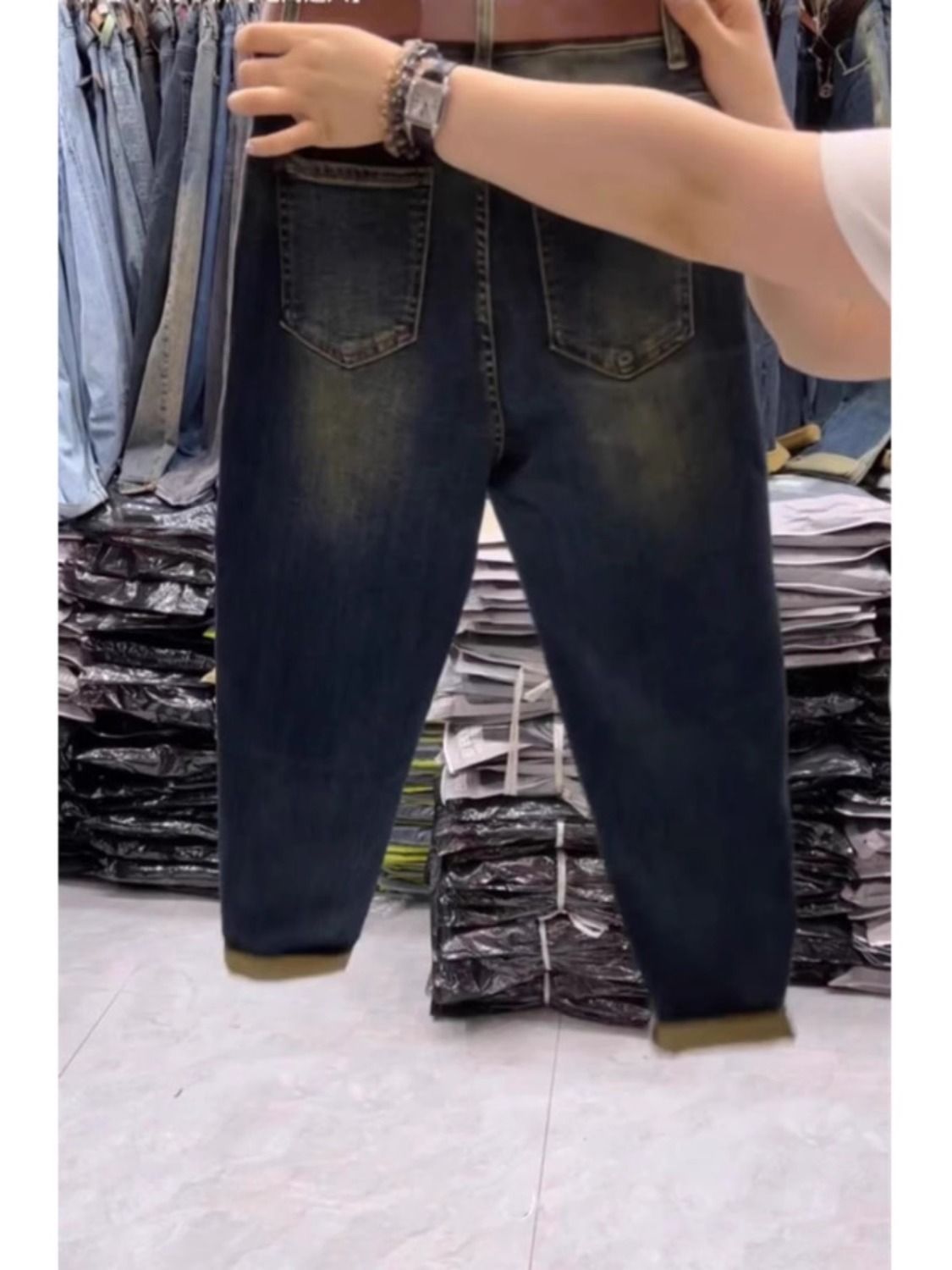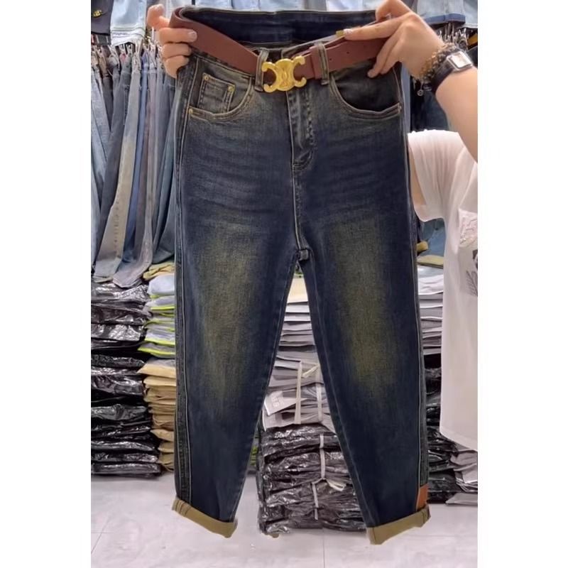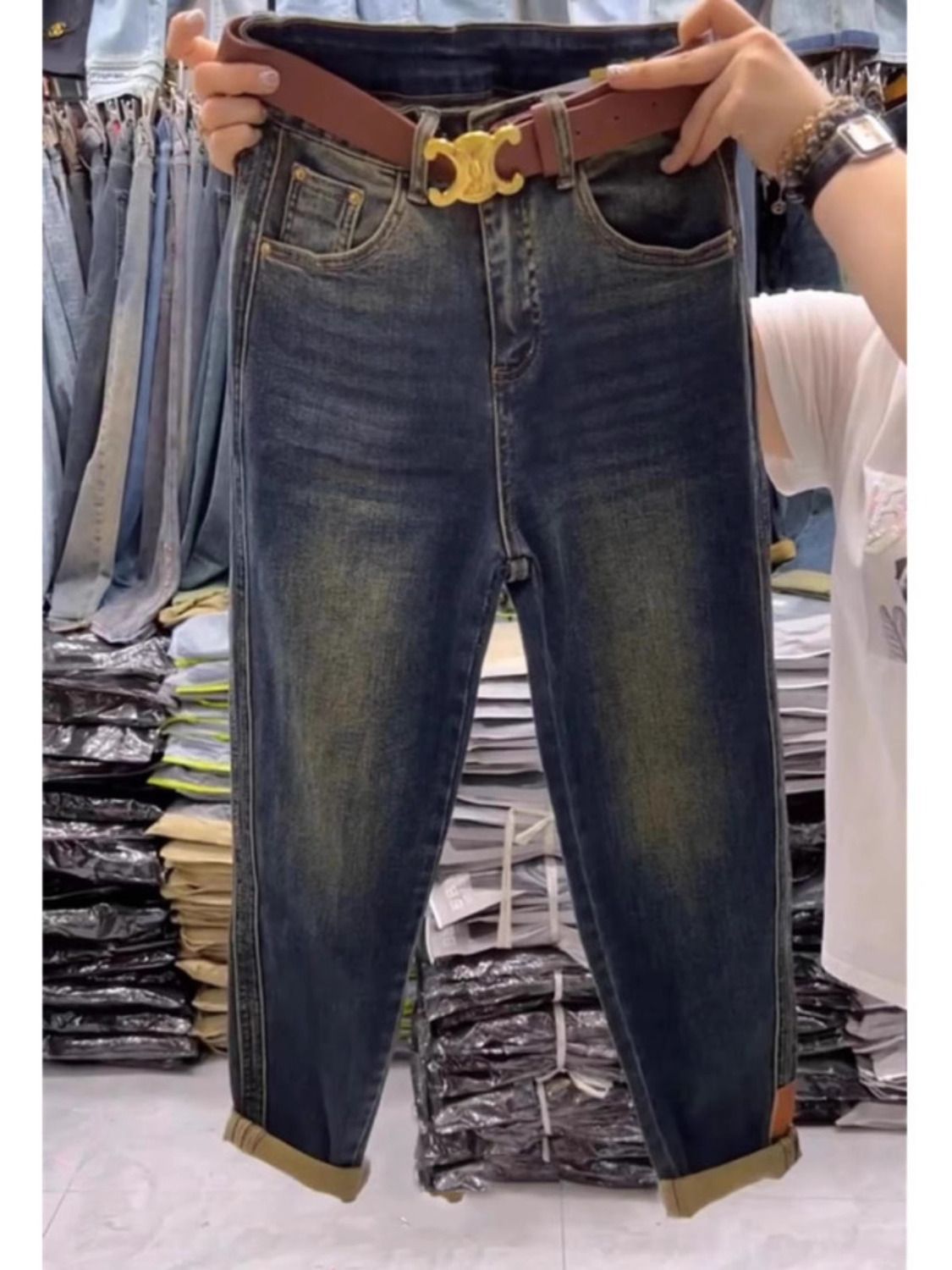 틈새 레트로 하렘 바지 청바지 2024 봄 새로운 높은 허리 슬리밍 디자인 감각 자른 아빠 바지스토어 가기