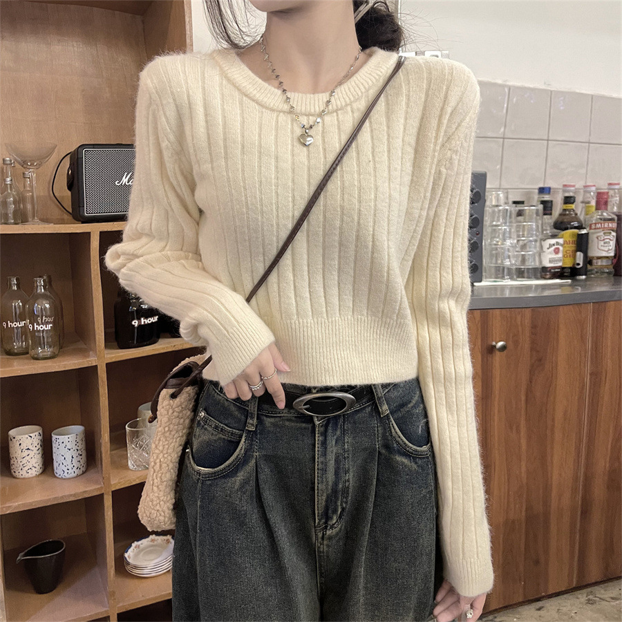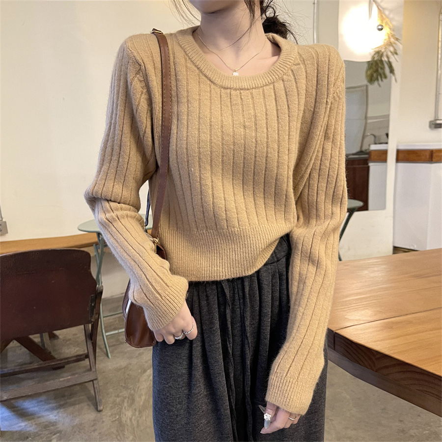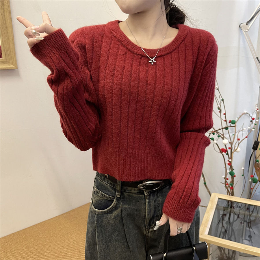 프랑스 스타일의 짧은 최고 게으른 스타일 고급 멋진 스웨터 붉은 바닥 풀오버 스웨터 가을 겨울 여성