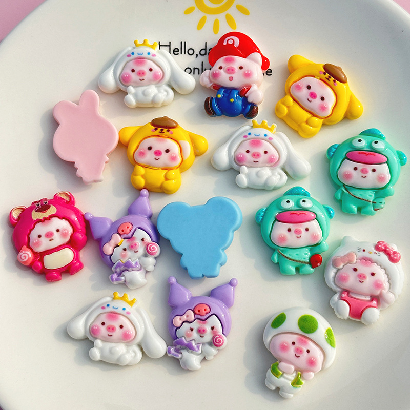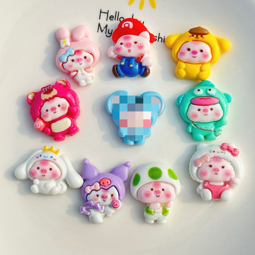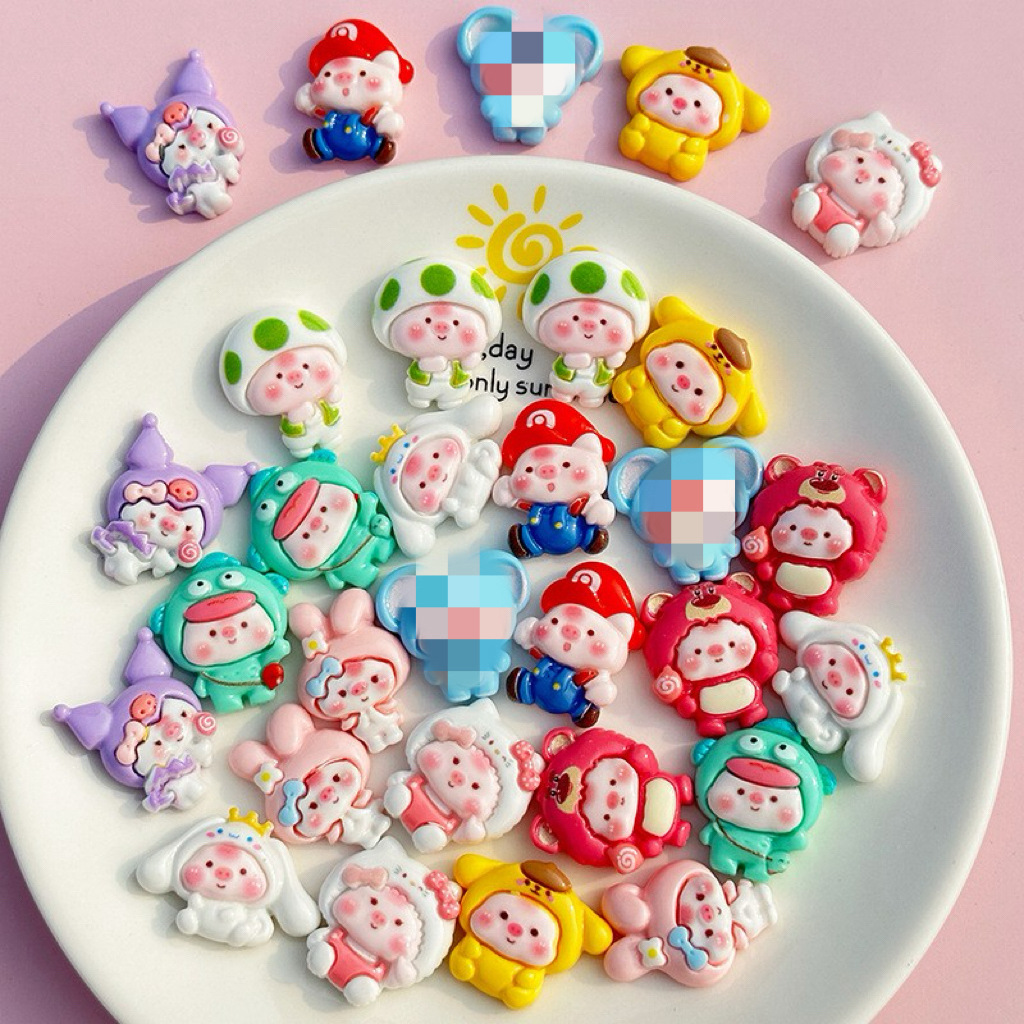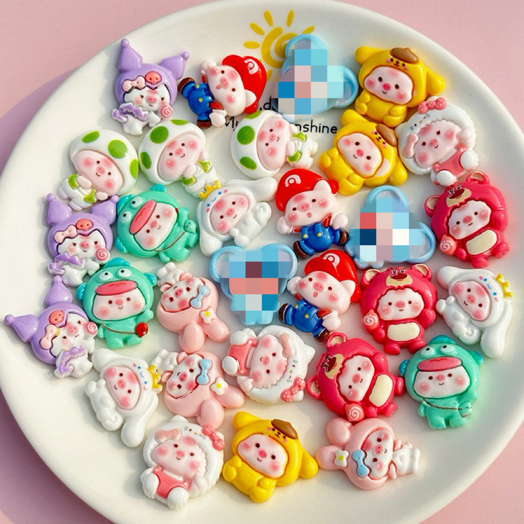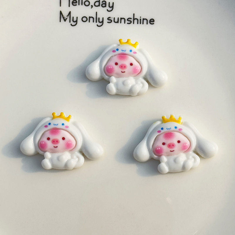 만화 밝은 얼굴 돼지 DIY 수지 액세서리 휴대 전화 쉘 크림 접착제 패치 헤어 액세서리 수제 재료스토어 가기