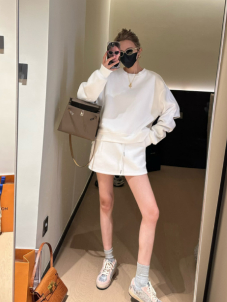 디자인 센스 루즈 라운드 넥 블랙 스웨트 셔츠 세트 여성의 이른 가을 새로운 디자인 센스 착용 투피스 세트