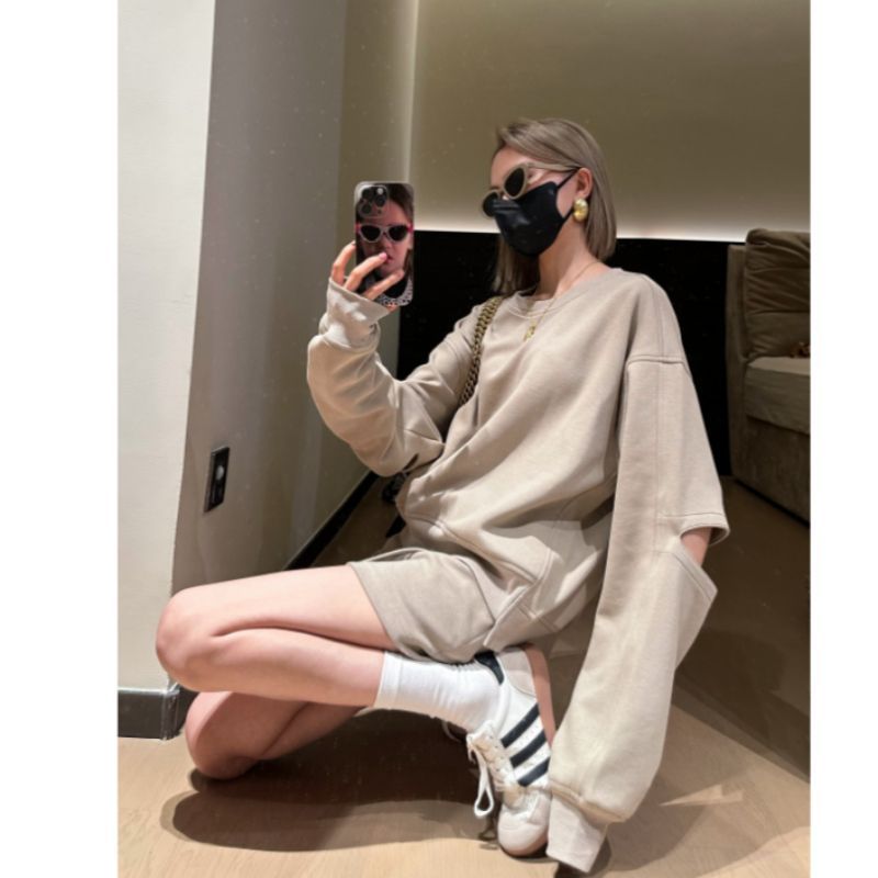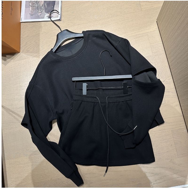 디자인 센스 루즈 라운드 넥 블랙 스웨트 셔츠 세트 여성의 이른 가을 새로운 디자인 센스 착용 투피스 세트스토어 가기