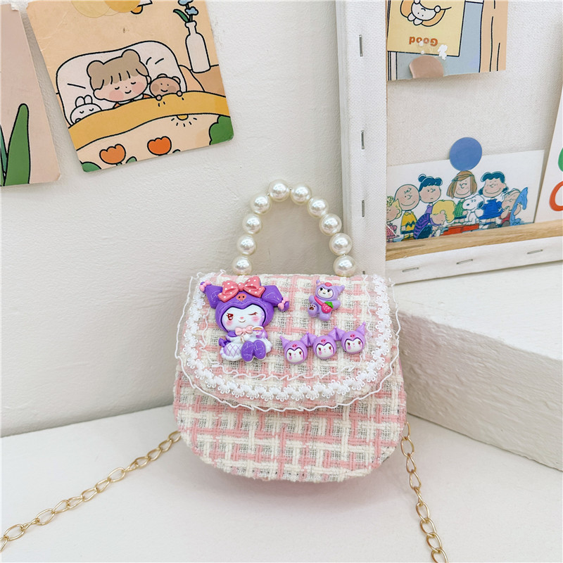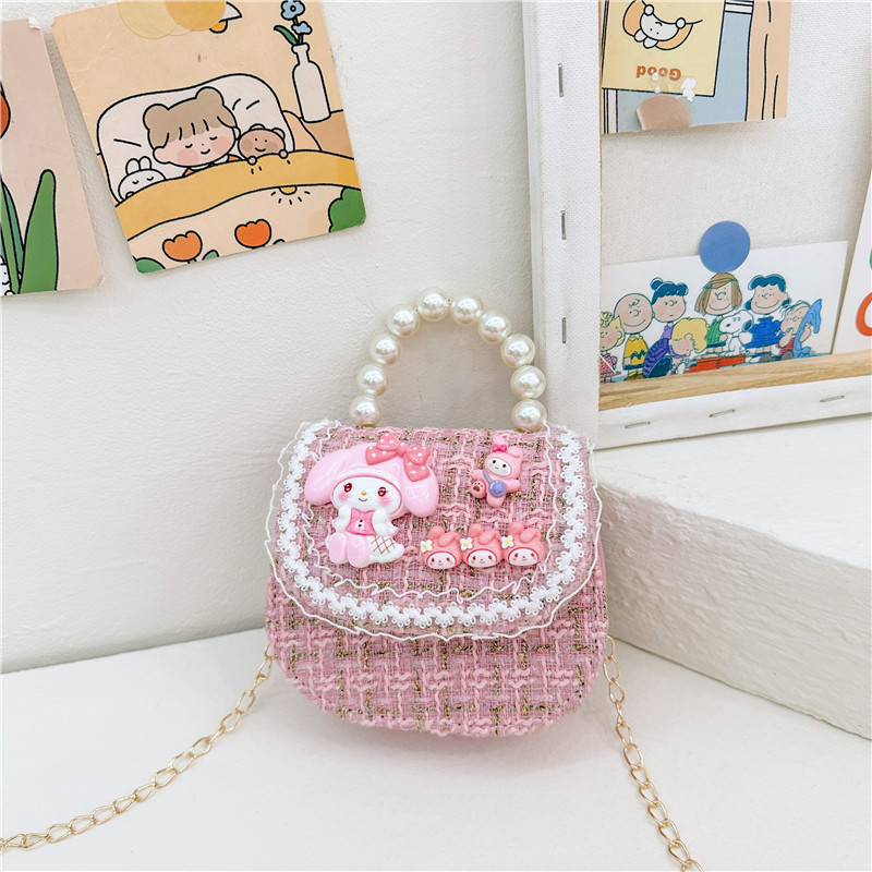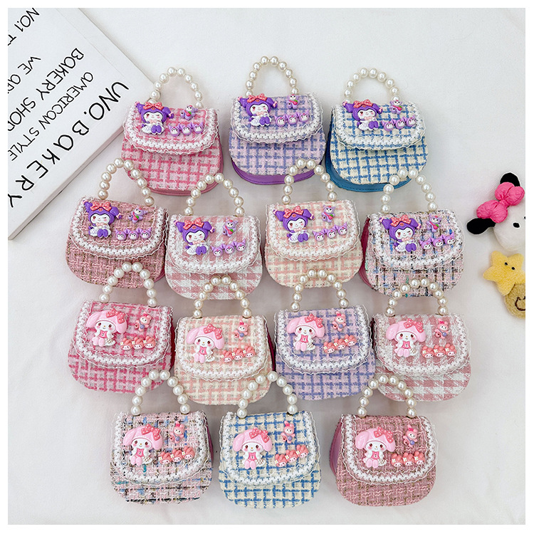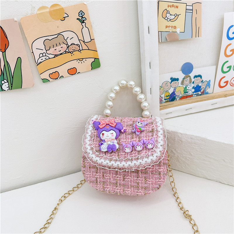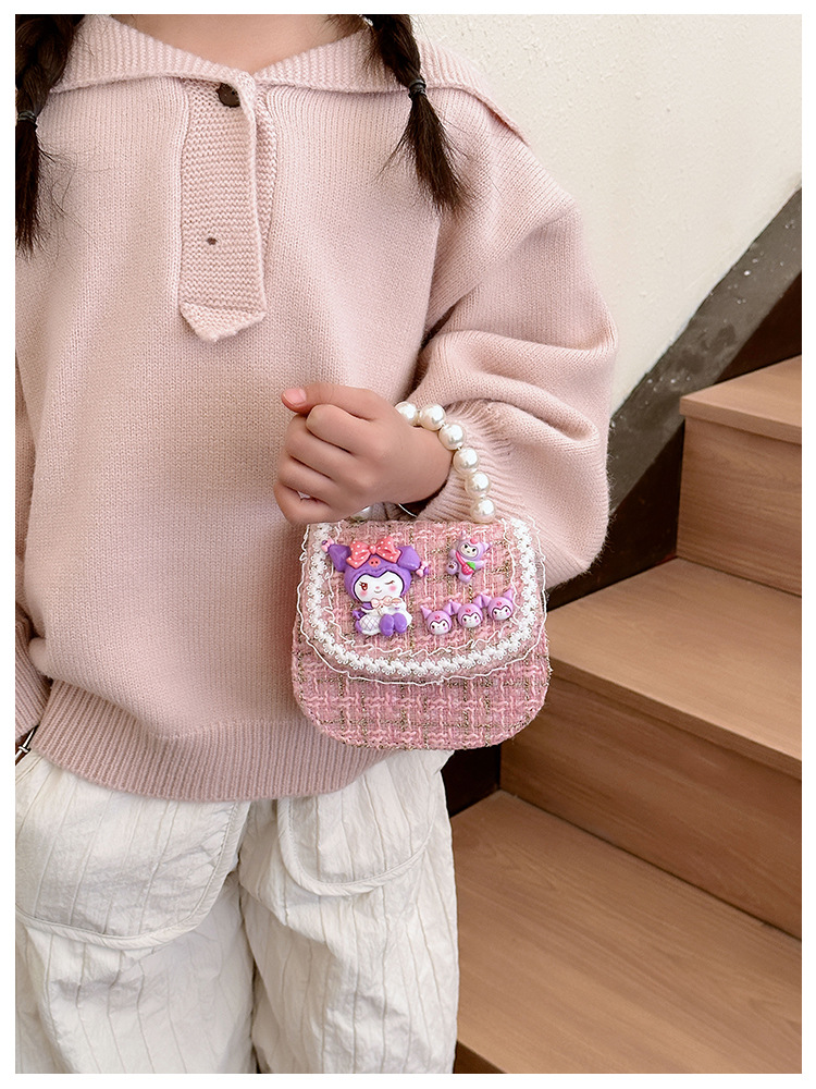 어린이 가방 봄 새로운 샤넬 스타일 모직 진주 손 가방 서양식 소녀 체인 메신저 가방 동전 지갑 가방스토어 가기