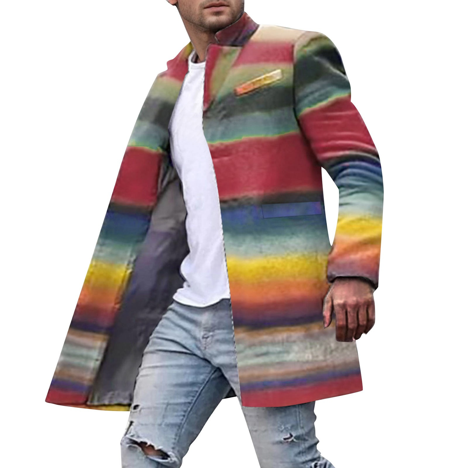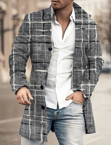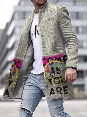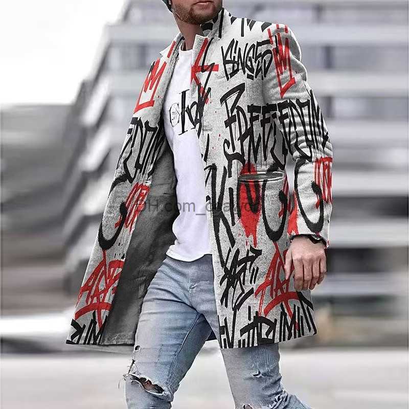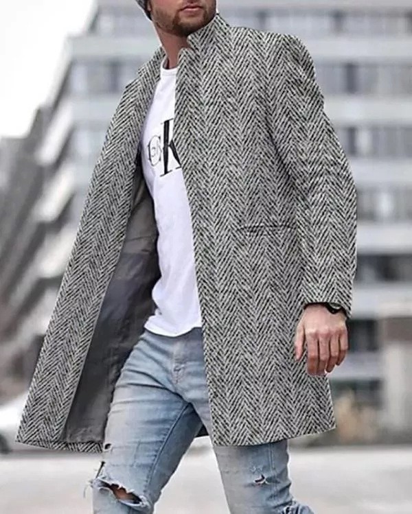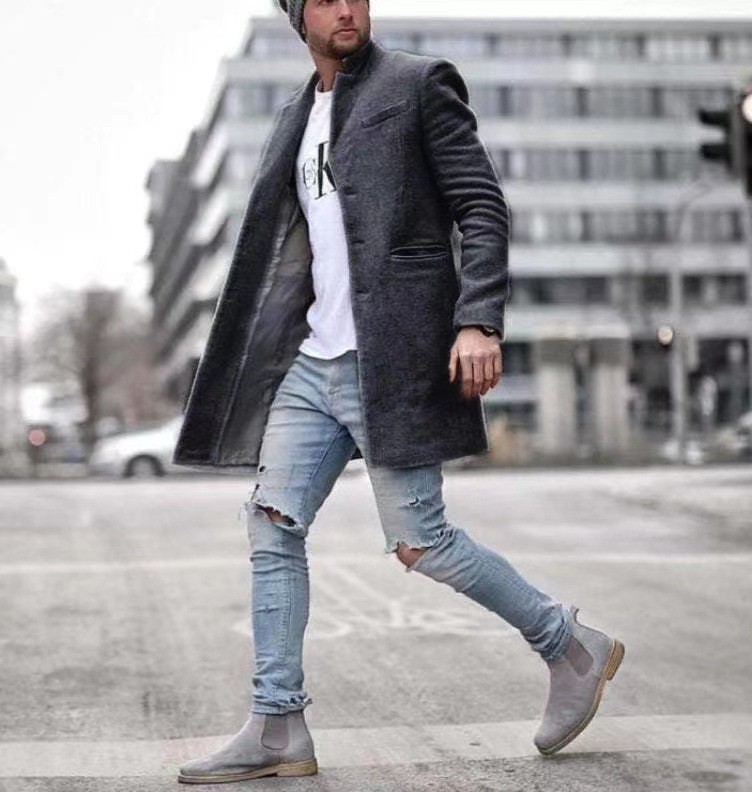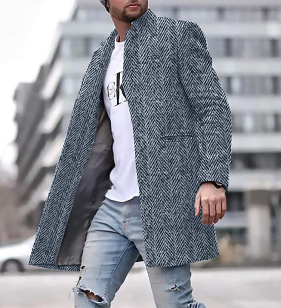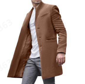 2024년 가을 신상 남성 스트리트 스타일 모직 스탠드 칼라 중간 길이 포켓 캐주얼 남성 코트