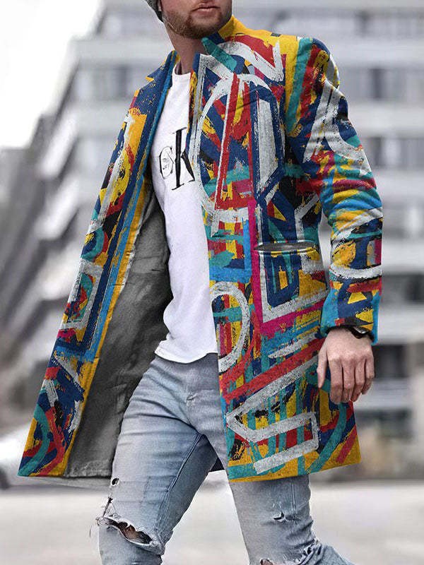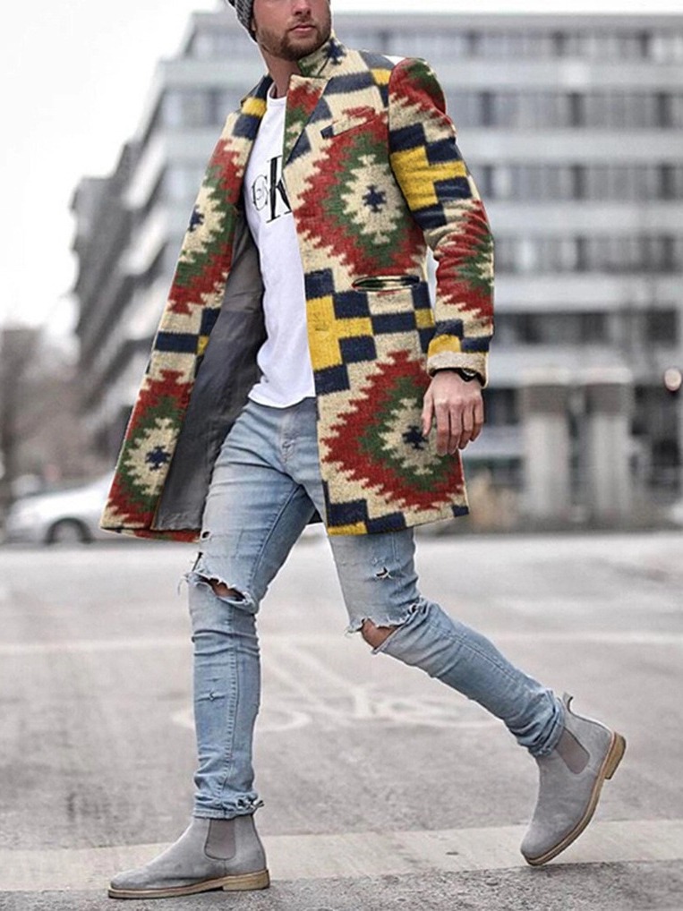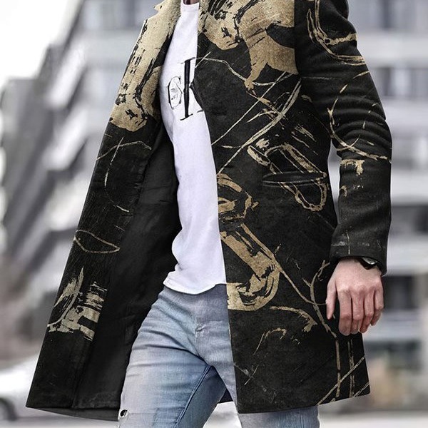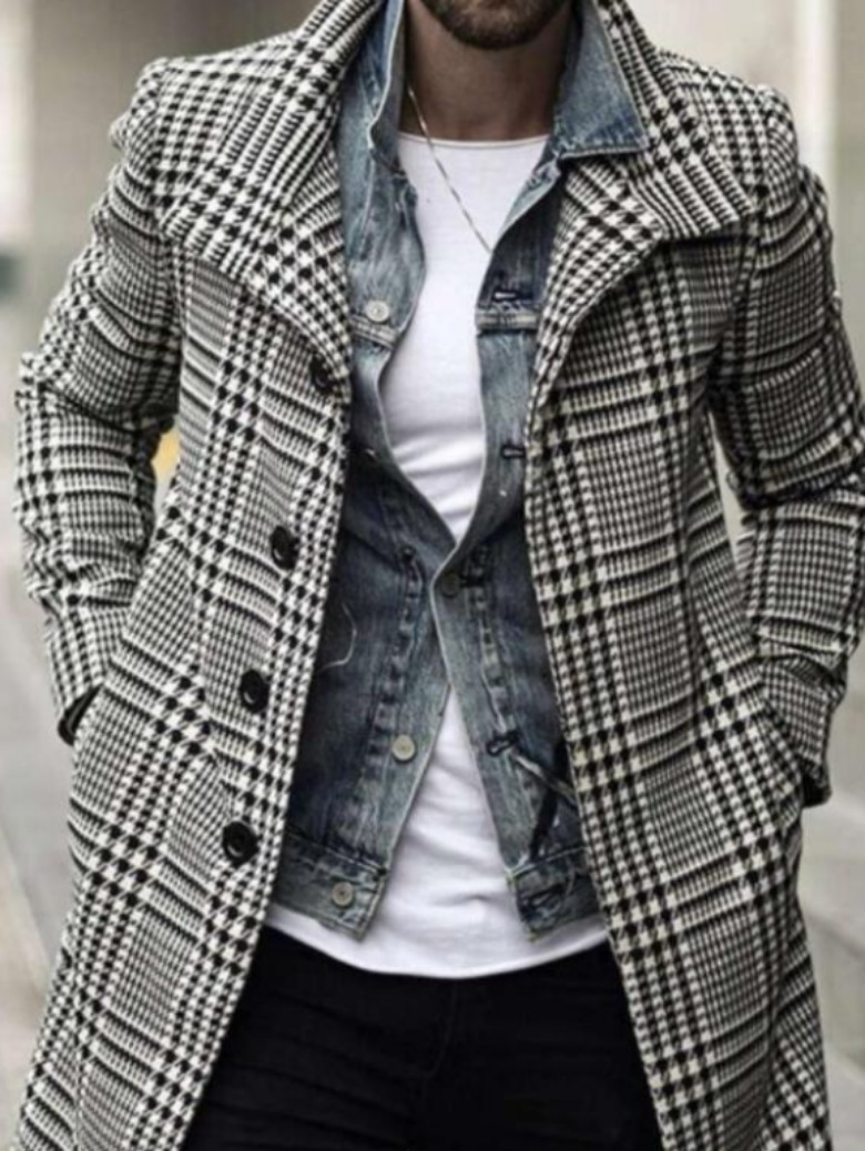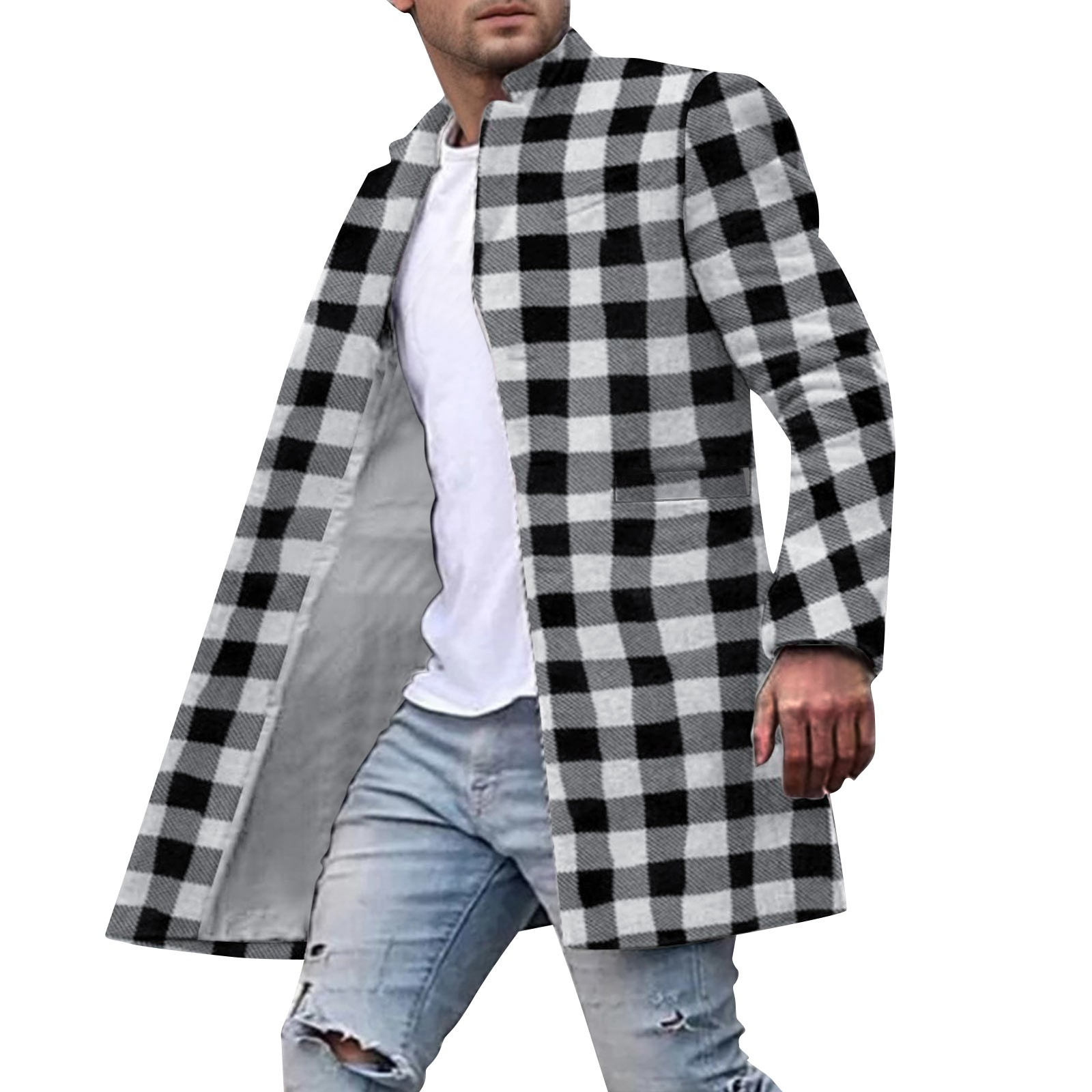 2024년 가을 신상 남성 스트리트 스타일 모직 스탠드 칼라 중간 길이 포켓 캐주얼 남성 코트