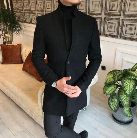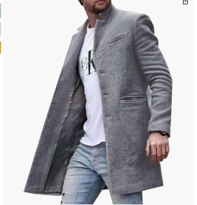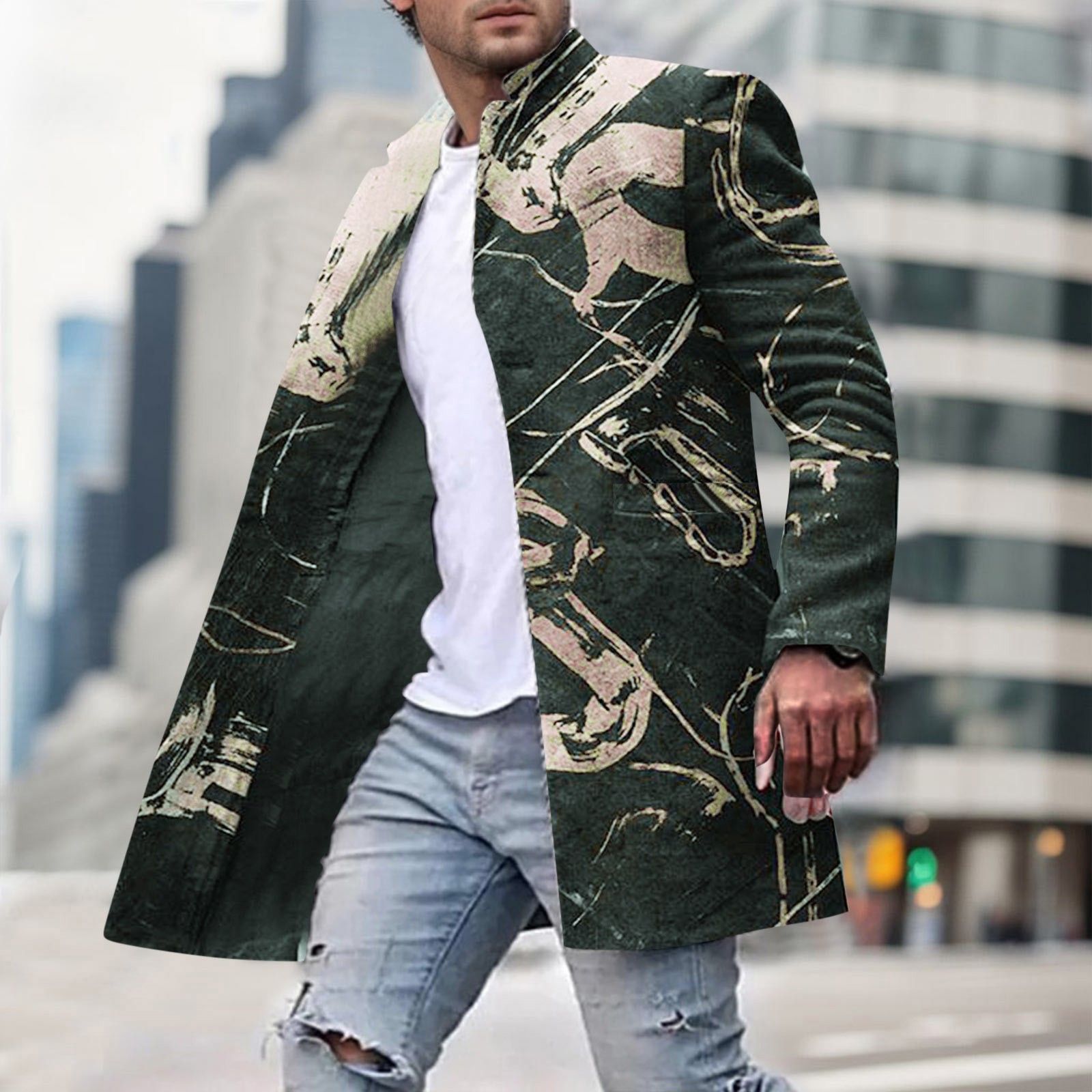 2024년 가을 신상 남성 스트리트 스타일 모직 스탠드 칼라 중간 길이 포켓 캐주얼 남성 코트스토어 가기