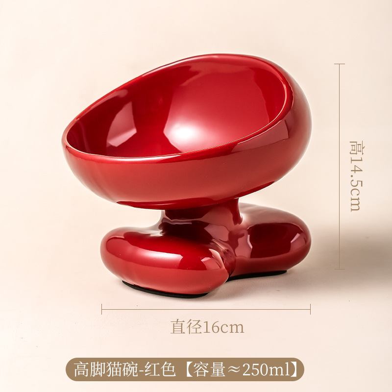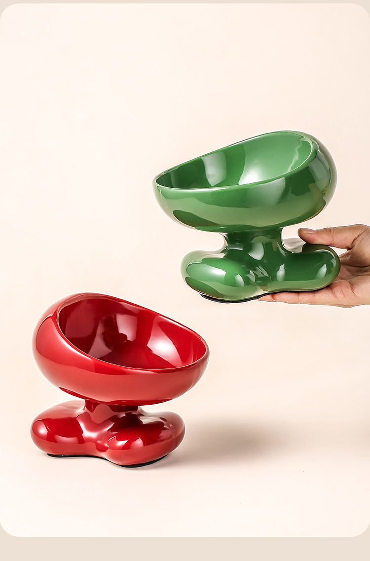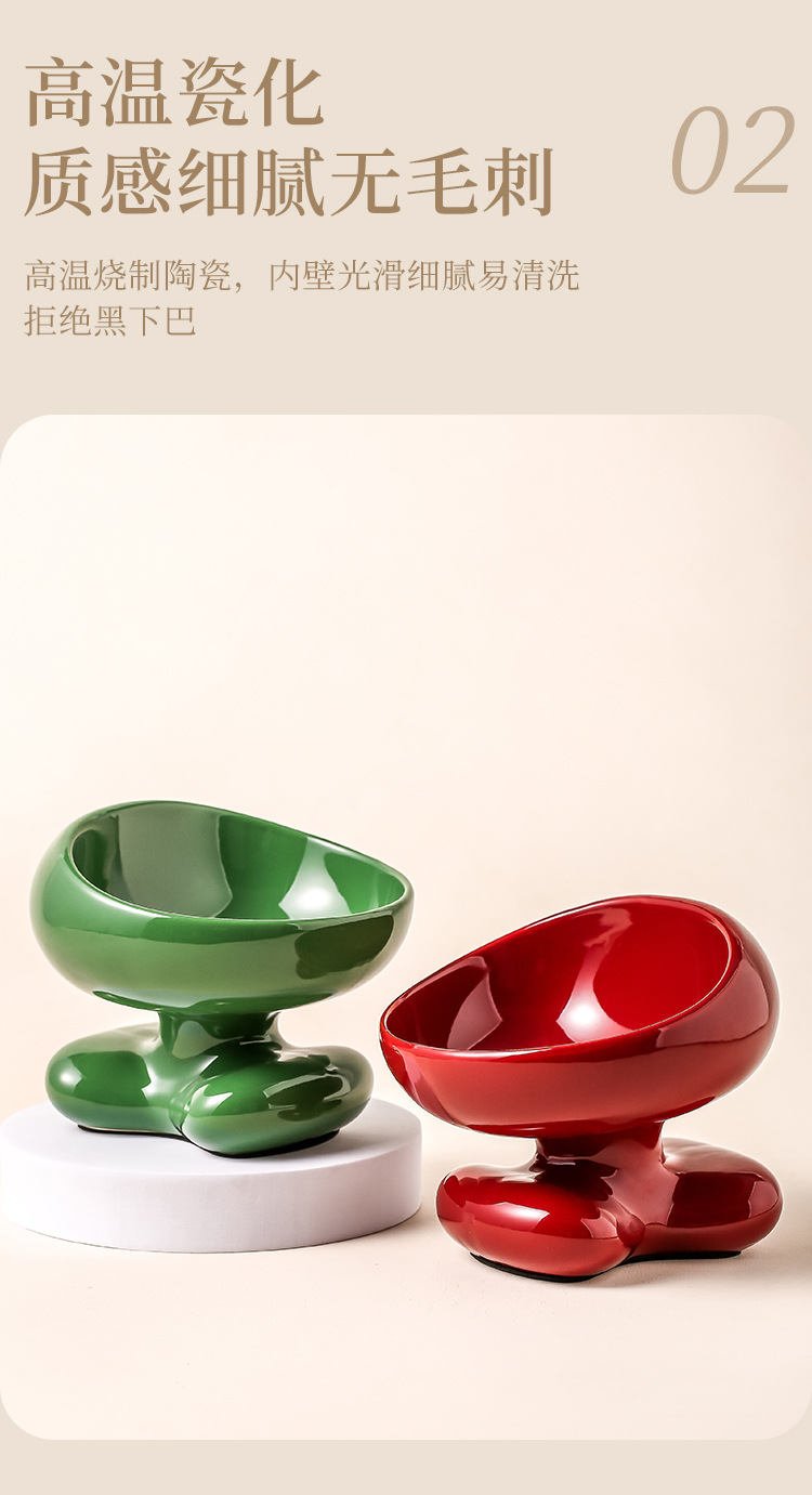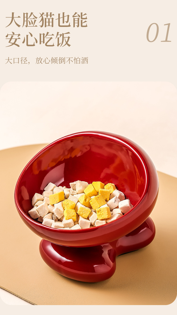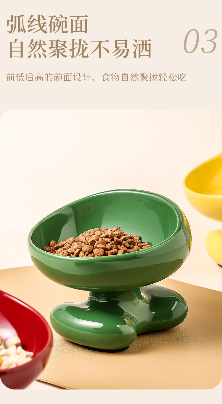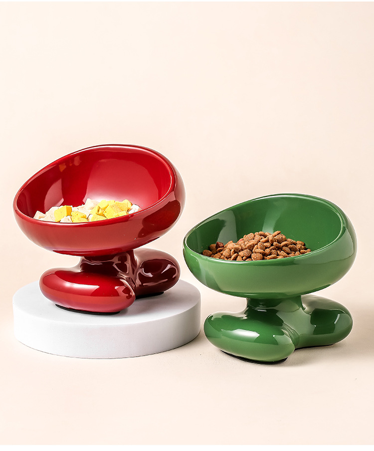 버섯 세라믹 애완 동물 그릇 큰 직경 높은 발 비스듬한 입 고양이 그릇 고양이 음식 그릇 안티 블랙 턱 고양이 음식 그릇 개 그릇