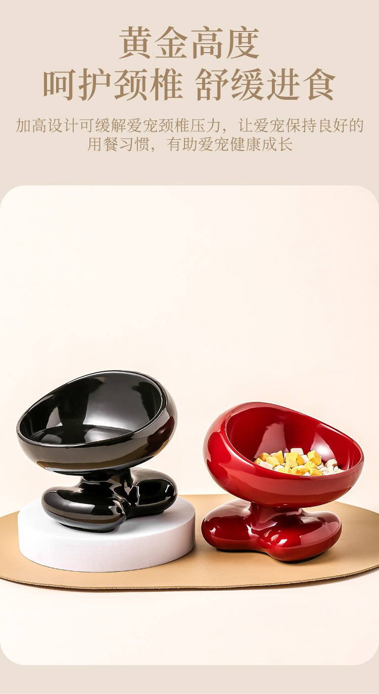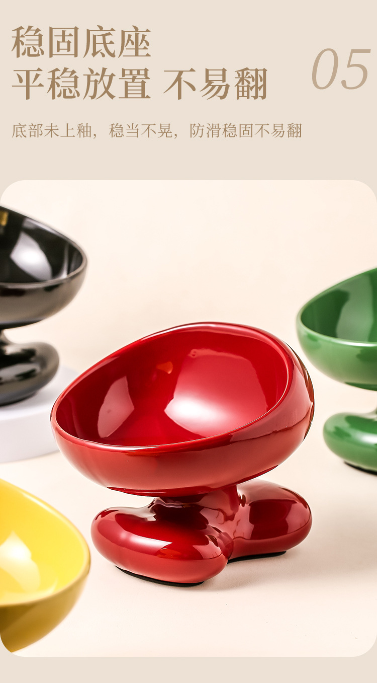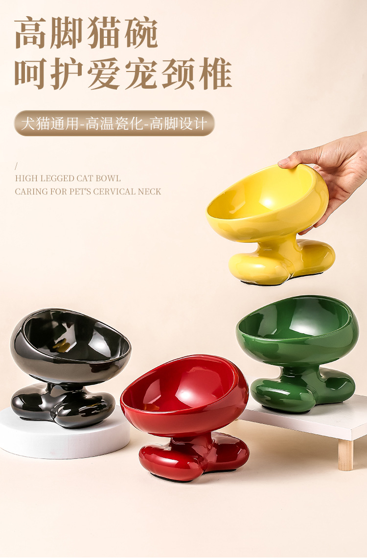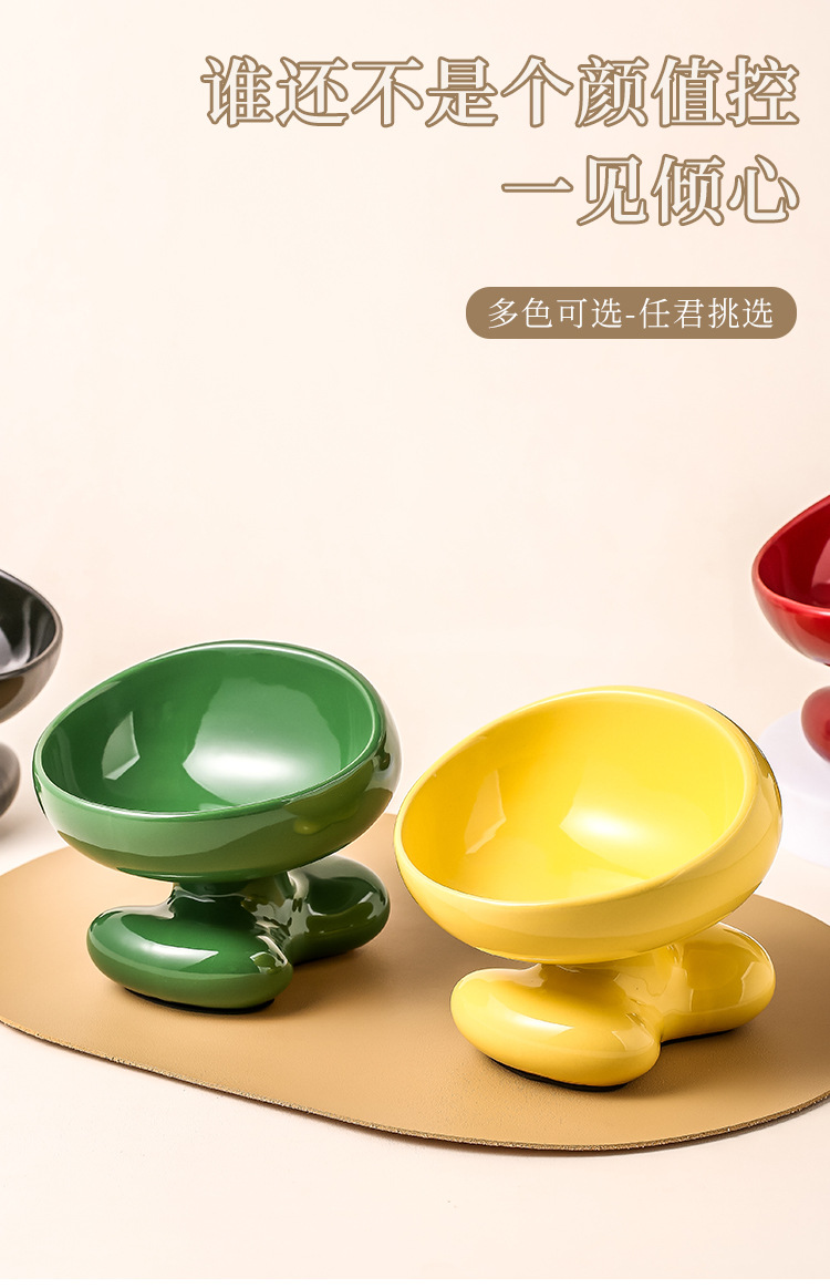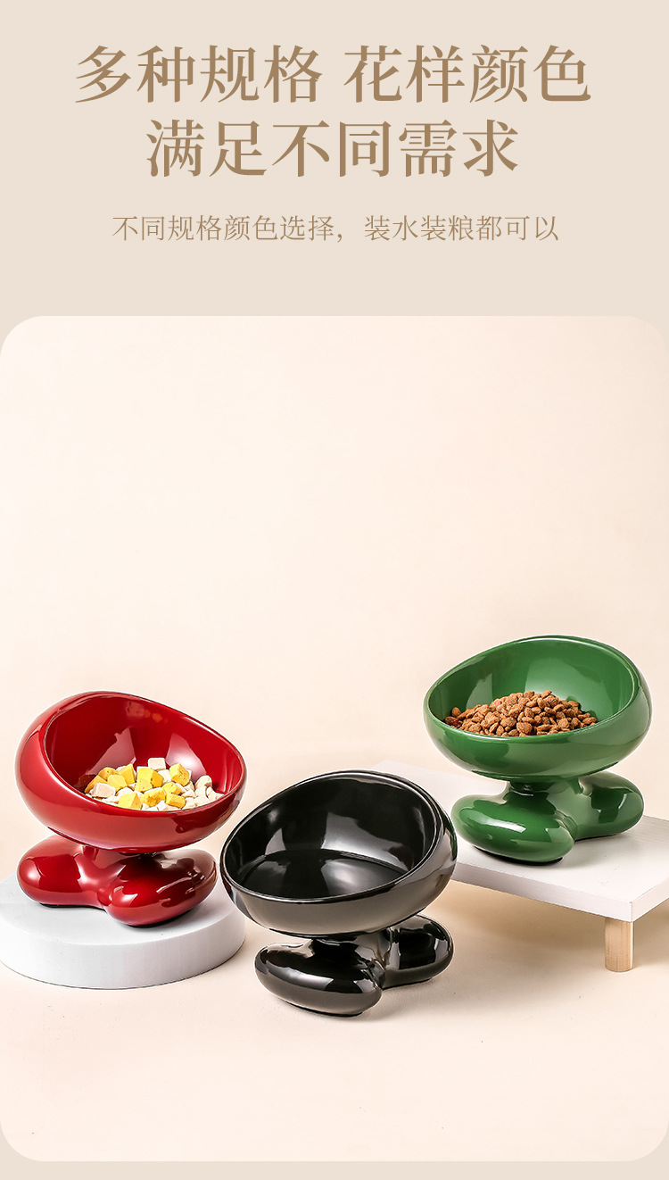 버섯 세라믹 애완 동물 그릇 큰 직경 높은 발 비스듬한 입 고양이 그릇 고양이 음식 그릇 안티 블랙 턱 고양이 음식 그릇 개 그릇스토어 가기