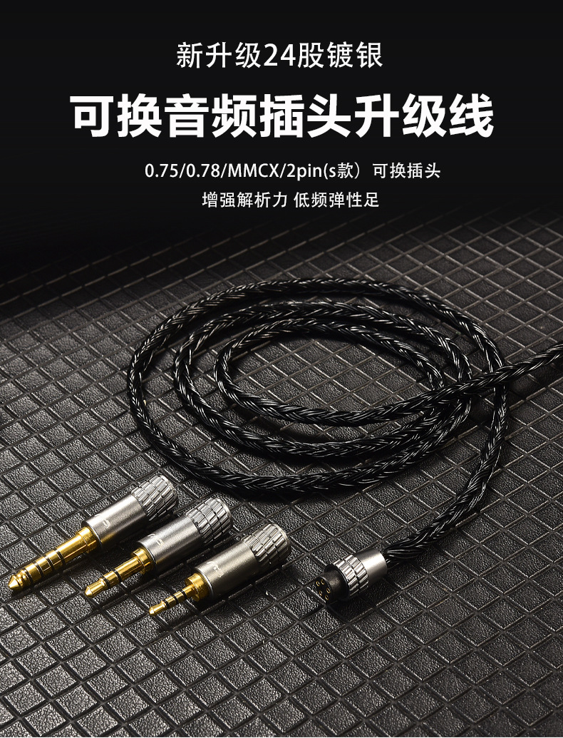 CVJ-K24 교체 가능한 플러그 hifi 24 스트랜드 꼰 실버 도금 헤드셋 업그레이드 케이블 0.78mm mmcx QDC