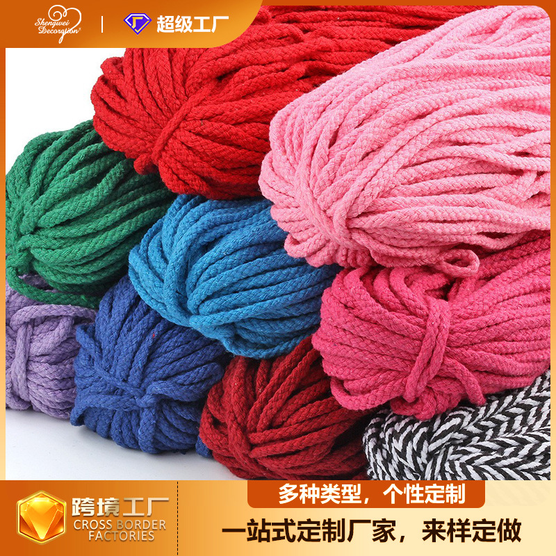5mm 8 가닥 중공 면 로프 다채로운 가방 졸라매는 끈 면사 5mm 면 땋은 로프 8 가닥 로프 졸라매는 끈스토어 가기