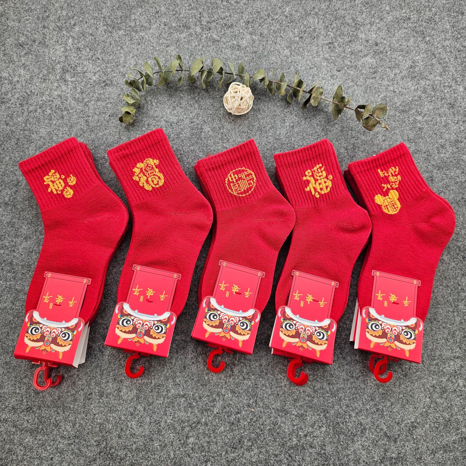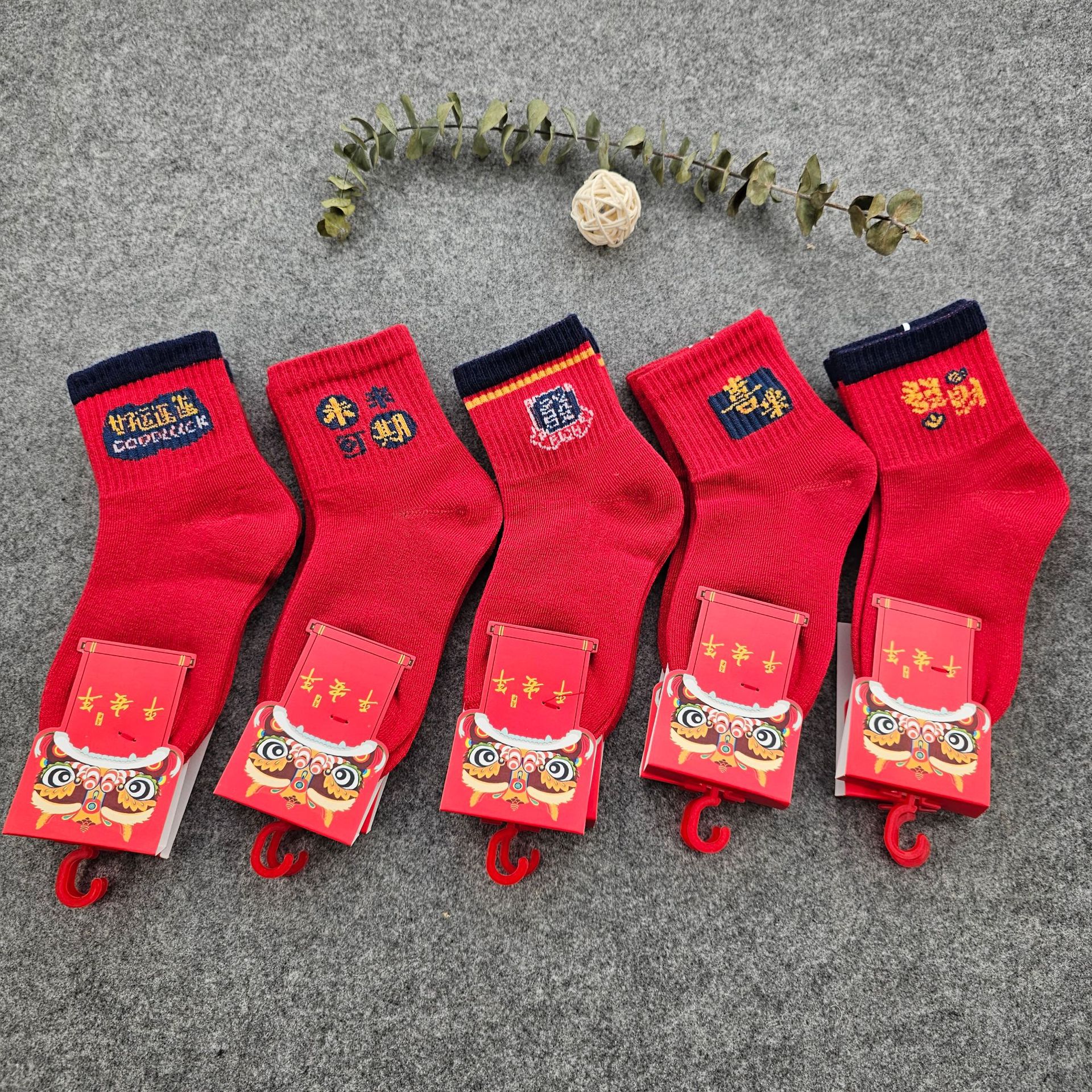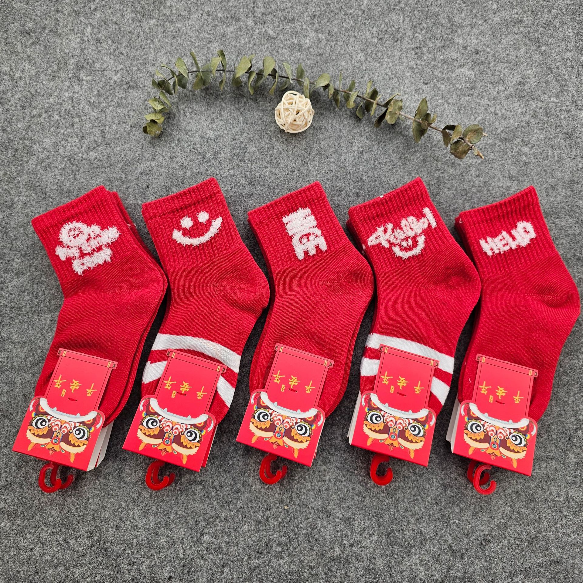 봄 새로운 어린이 튜브 큰 빨간 양말 반점 도매 빨간 올해 양말 곰 만화 스포츠 양말