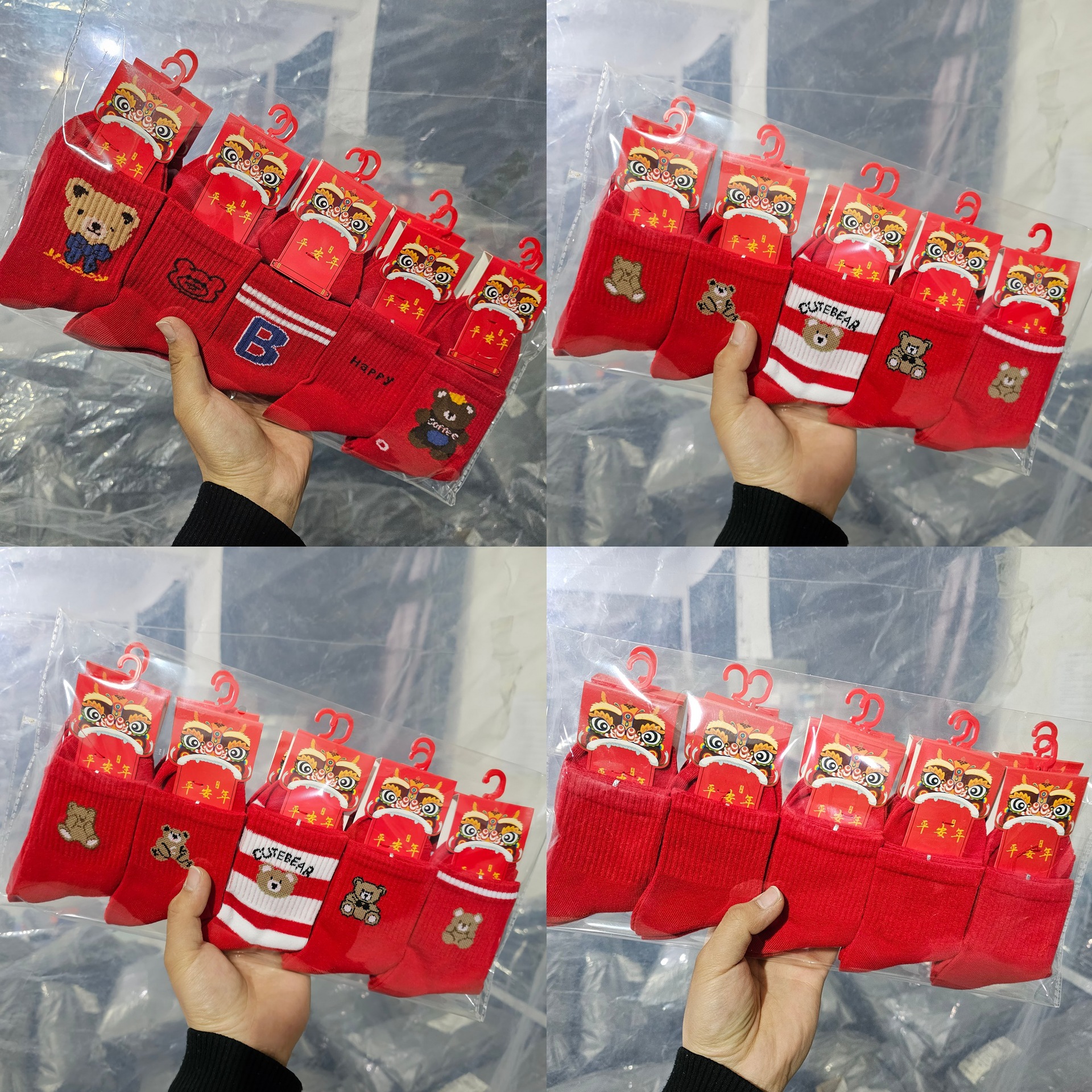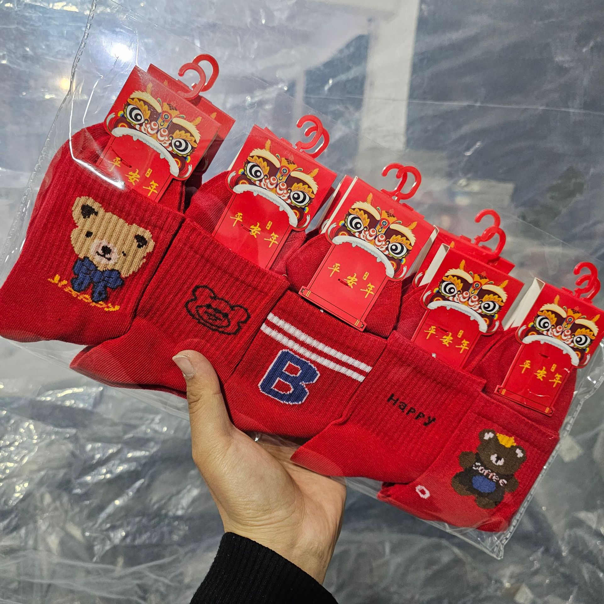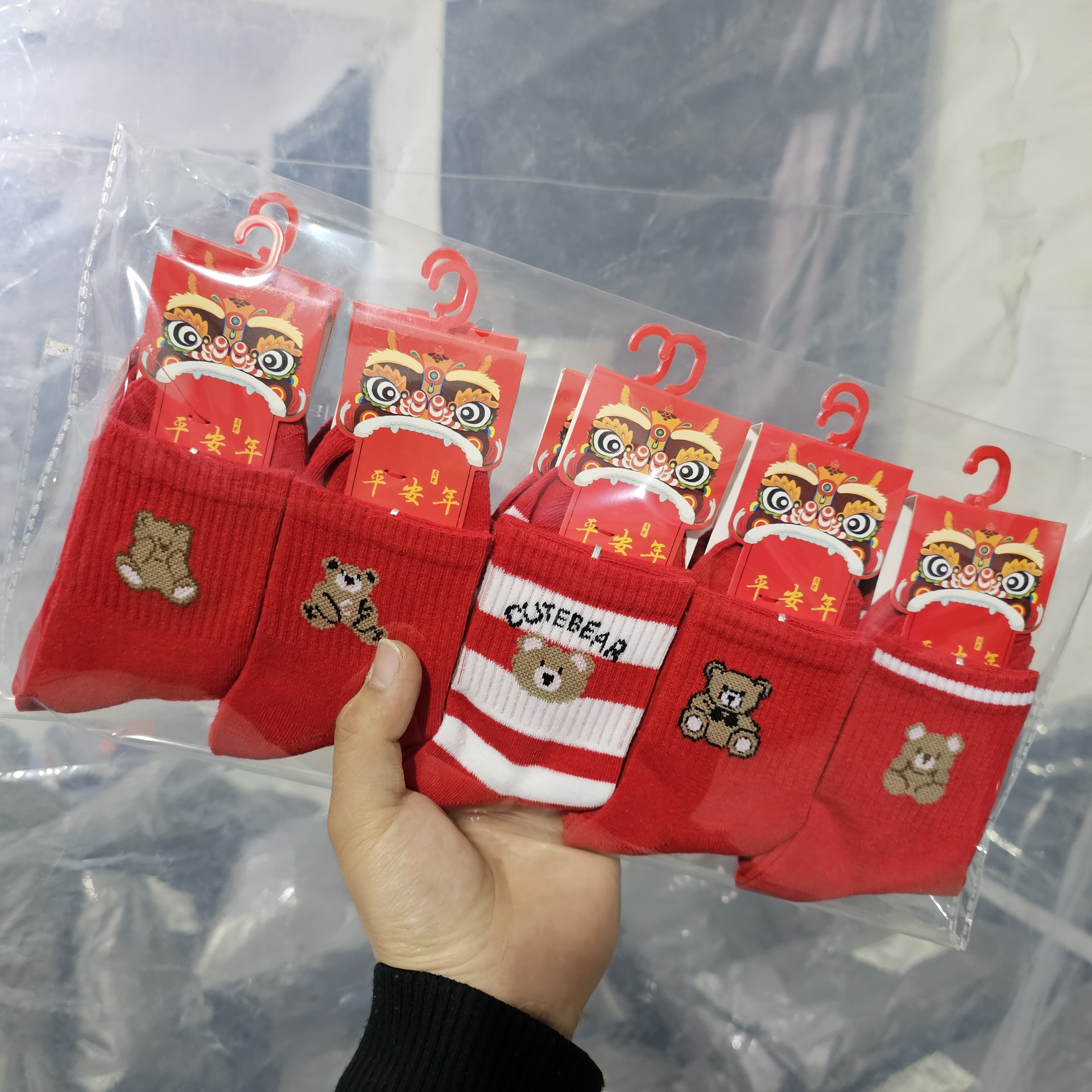 봄 새로운 어린이 튜브 큰 빨간 양말 반점 도매 빨간 올해 양말 곰 만화 스포츠 양말스토어 가기
