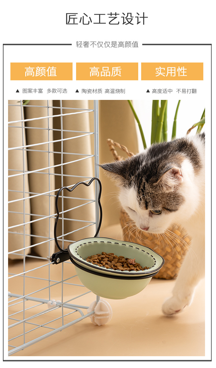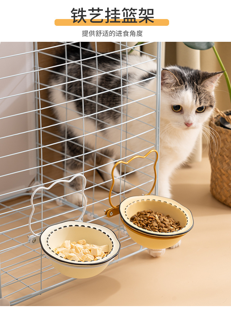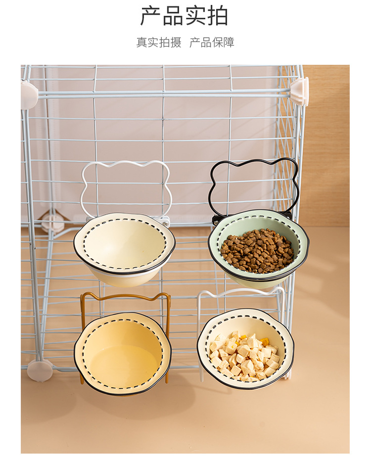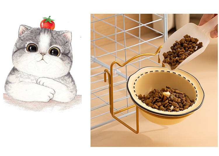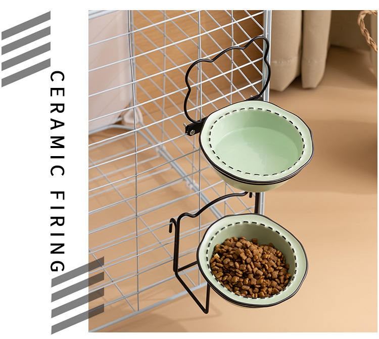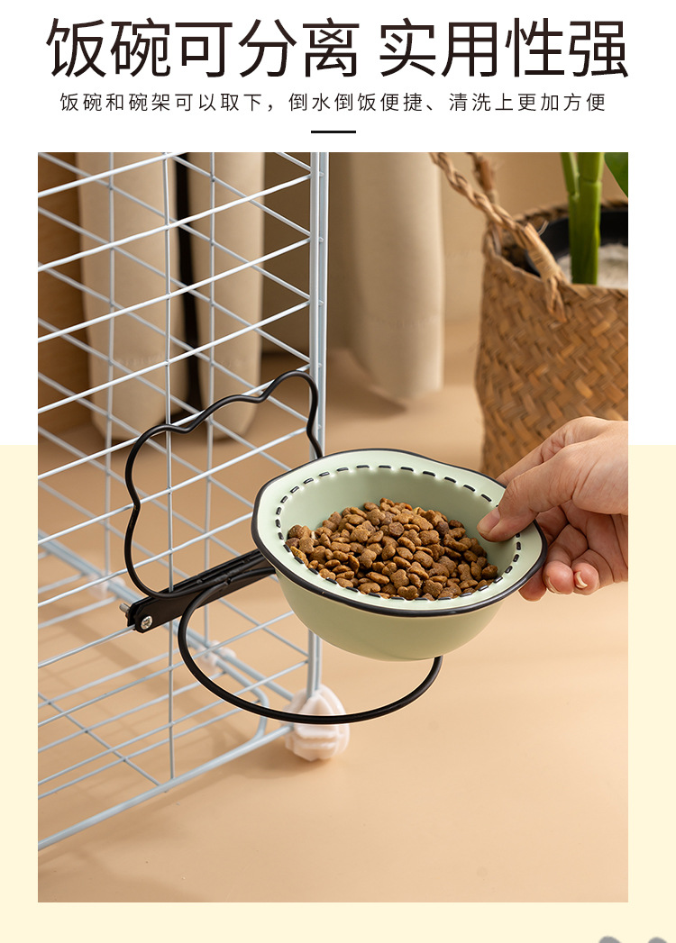 매달린 고양이 그릇 더블 그릇 애완 동물 개 먹이 그릇 마시는 그릇 비스듬한 입 고양이 음식 분지 조절 목 보호 교수형 케이지 개 그릇스토어 가기