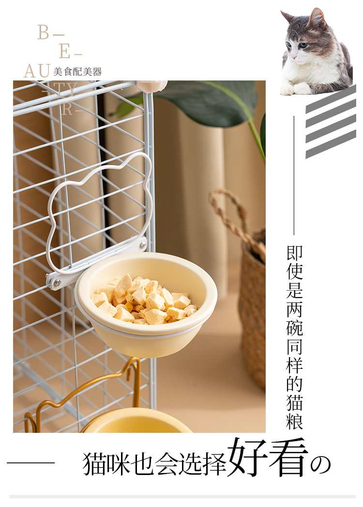 • [업그레이드 버전] 교수형 케이지 골드 랙 + 우유 노란색 그릇