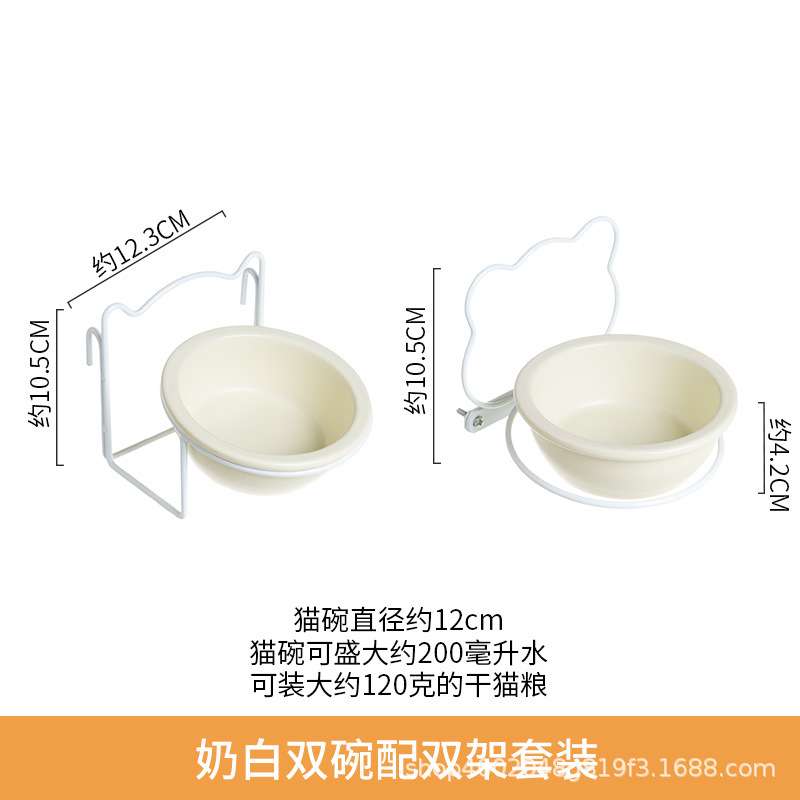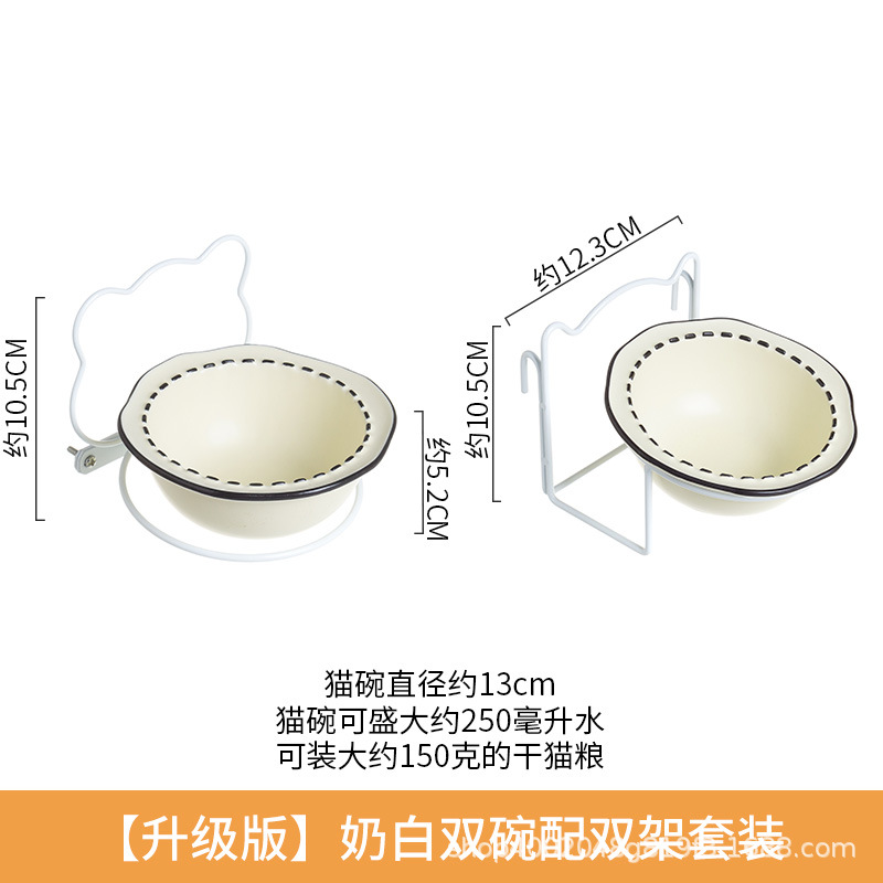 • [일반 버전] 더블 보울 더블 랙이있는 우유 흰색 더블 그릇