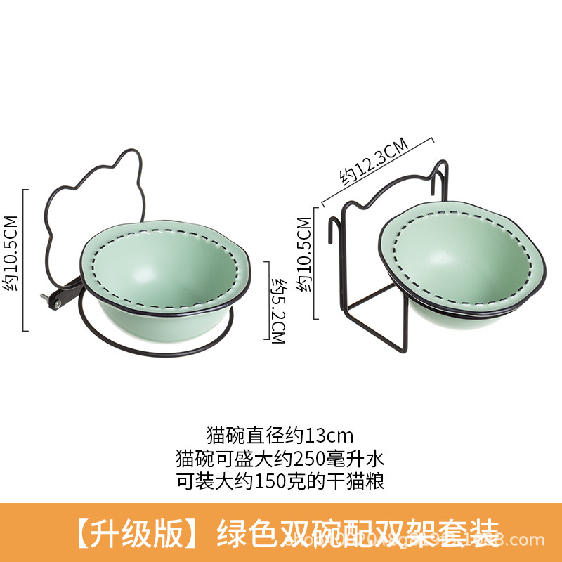 • [업그레이드 버전] 더블 보울 더블 랙이있는 우유 녹색 더블 그릇