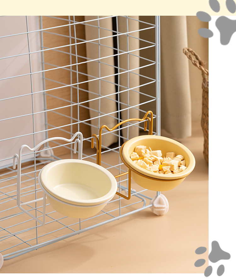 • [업그레이드 버전] 잠금 케이지 골드 랙 + 우유 노란색 그릇