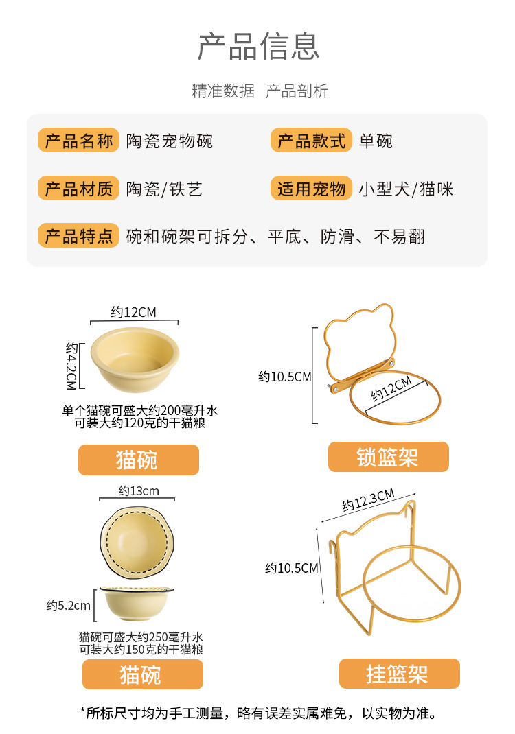• 잠금 케이지 골드 랙 + 우유 노란색 그릇 (일반)