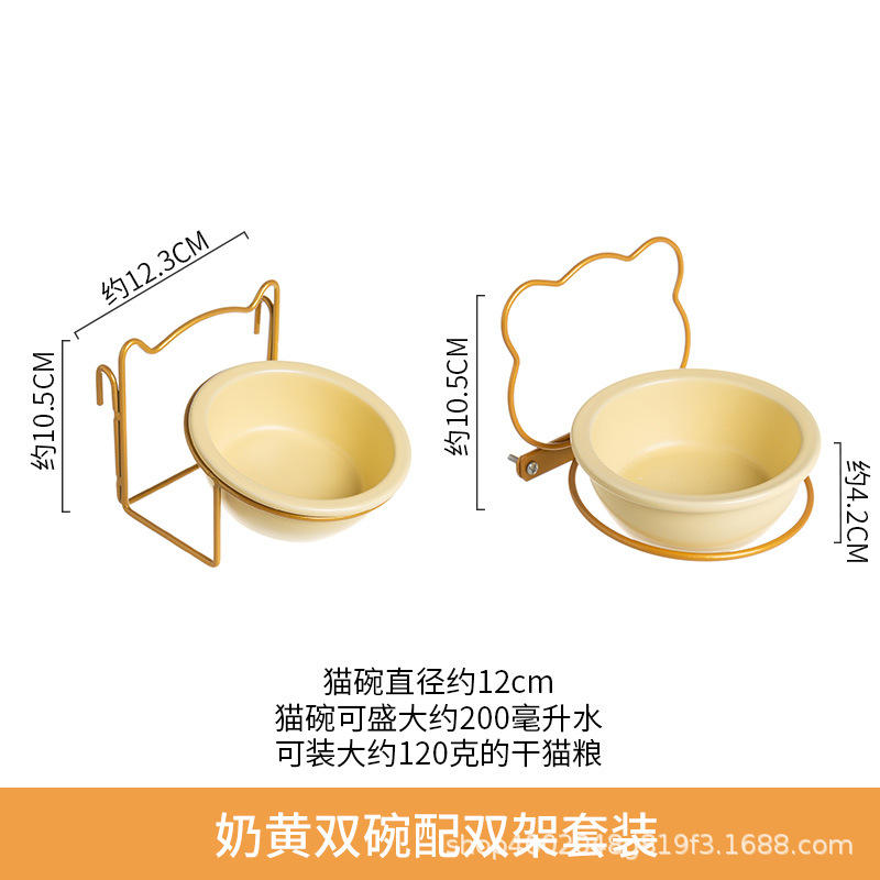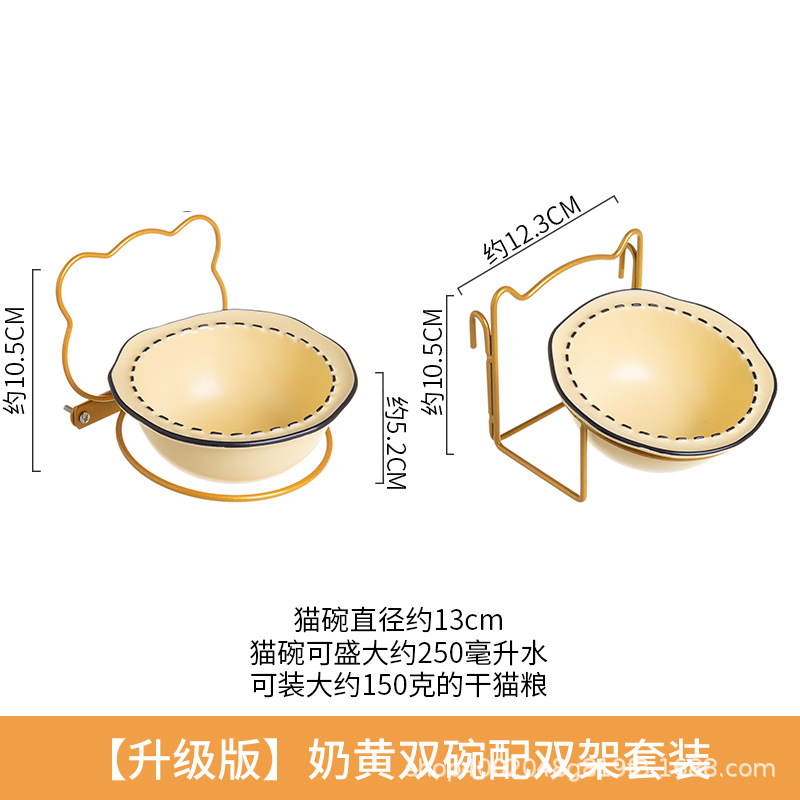 • [업그레이드 버전] 이중 그릇 더블 랙이있는 우유 노란색 더블 그릇