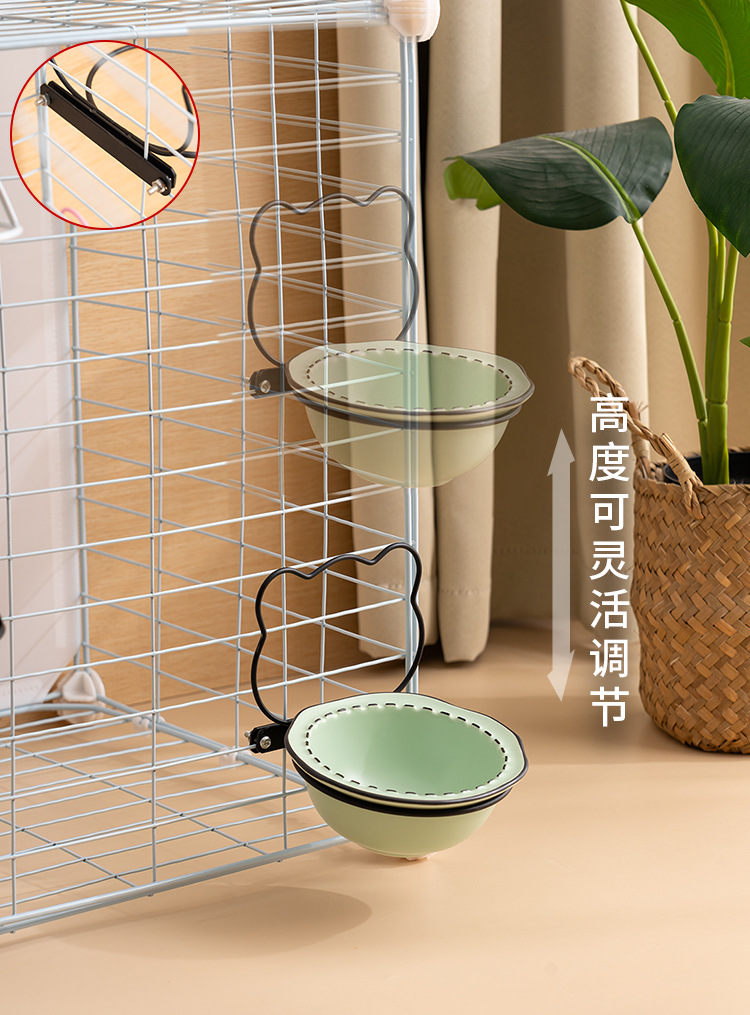 • [업그레이드 버전] 잠금 케이지 화이트 랙 + 우유 흰색 그릇