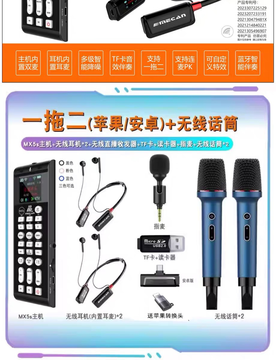 Meijia MX5S 휴대 전화 라이브 사운드 카드 야외 무선 풀 세트 장비 특수 빠른 손 흔들어 음성 PK 마이크 노래