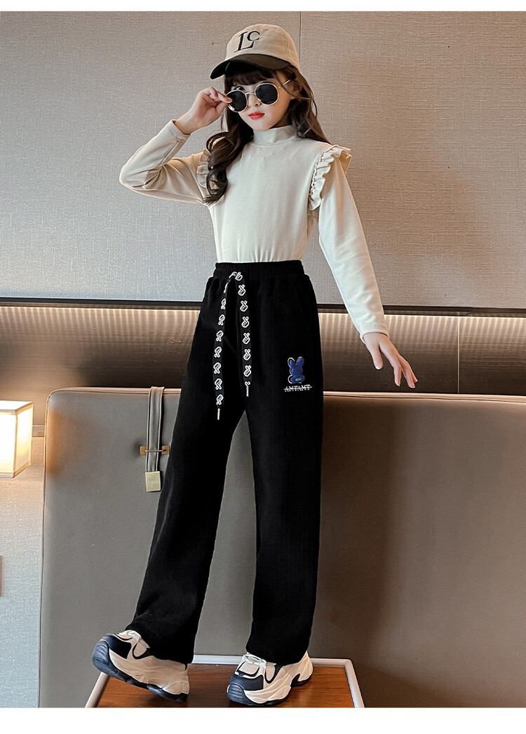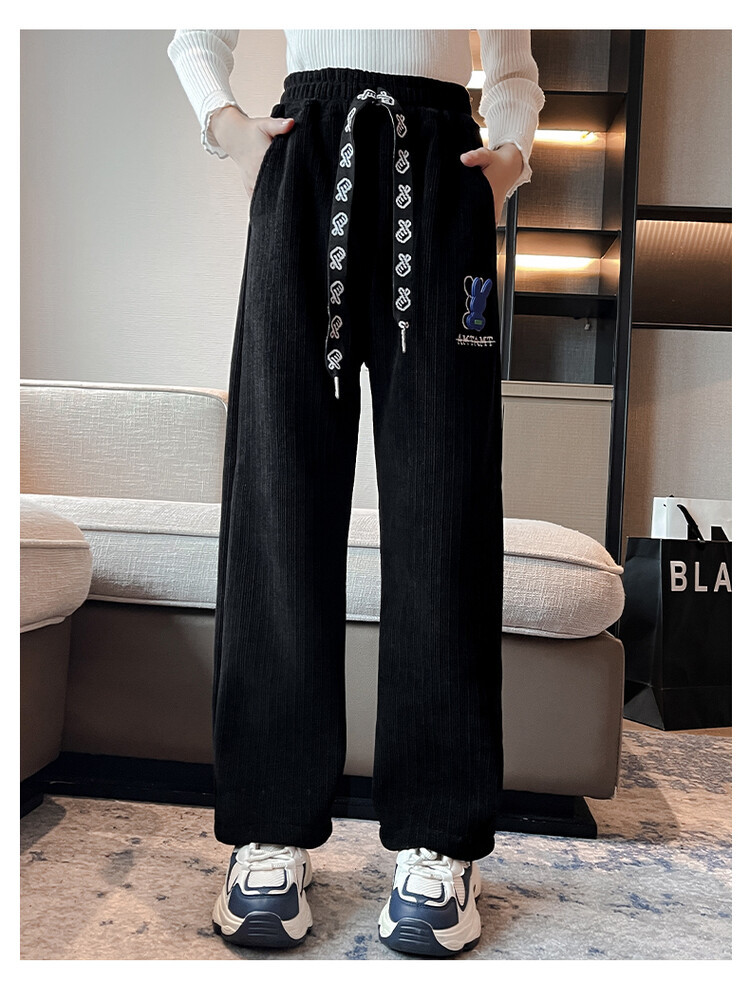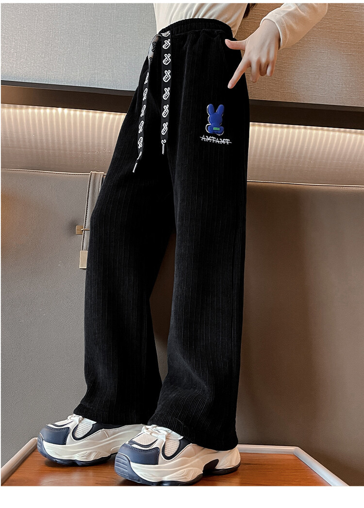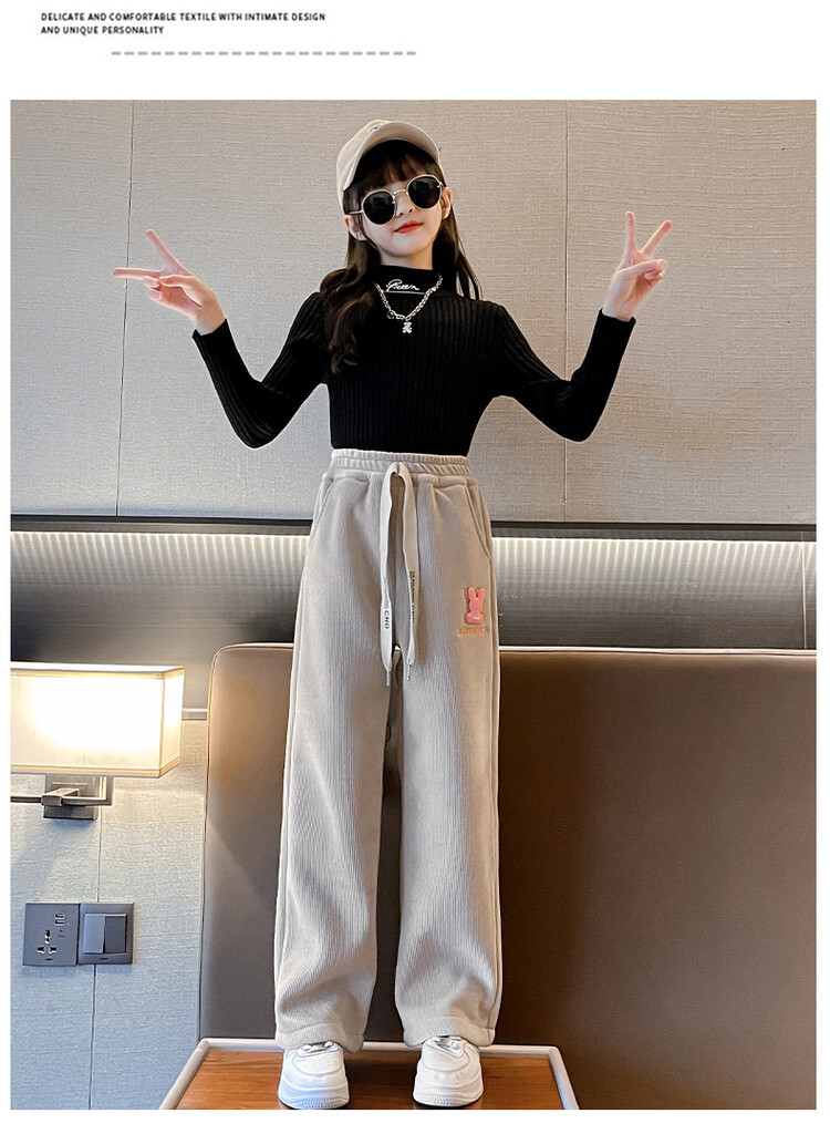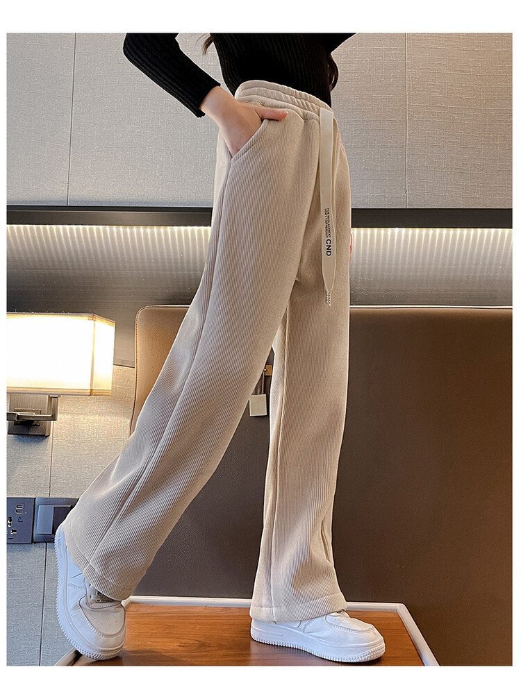 소녀 바지 가을 겨울 2023 새 겨울 옷 중 큰 어린이 스웨트 바지 캐주얼 아기 가을 어린이 와이드 레그 바지