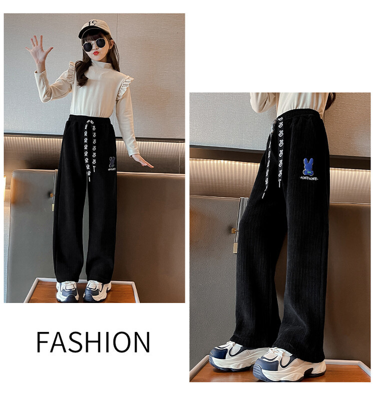 소녀 바지 가을 겨울 2023 새 겨울 옷 중 큰 어린이 스웨트 바지 캐주얼 아기 가을 어린이 와이드 레그 바지스토어 가기