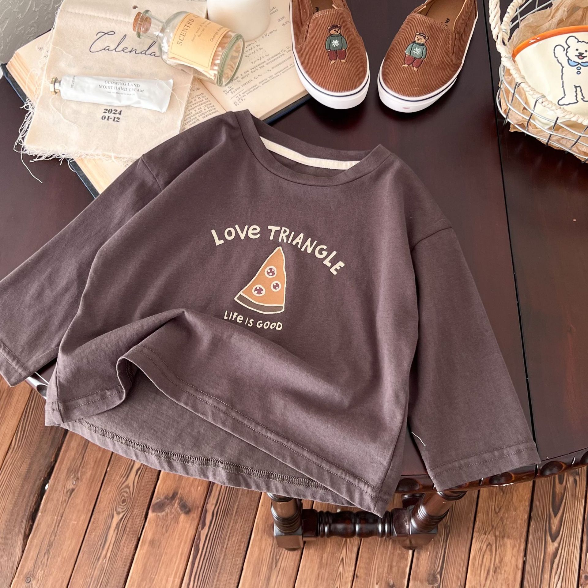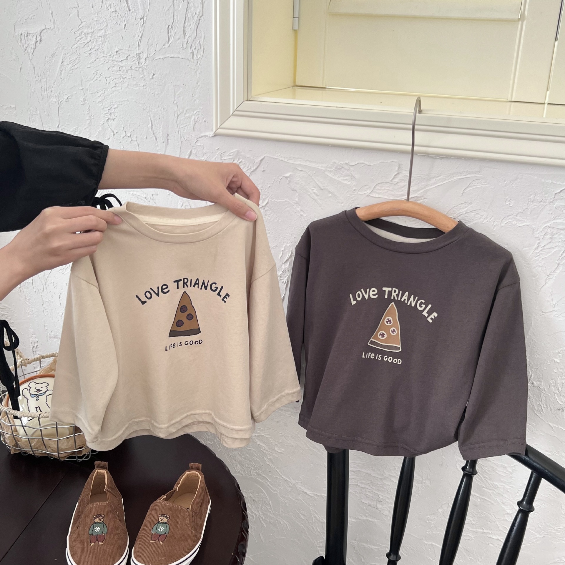 2024 봄 새로운 어린이 만화 귀여운 바닥 셔츠 아기 소녀 면화 풀오버 소년 치즈 티셔츠